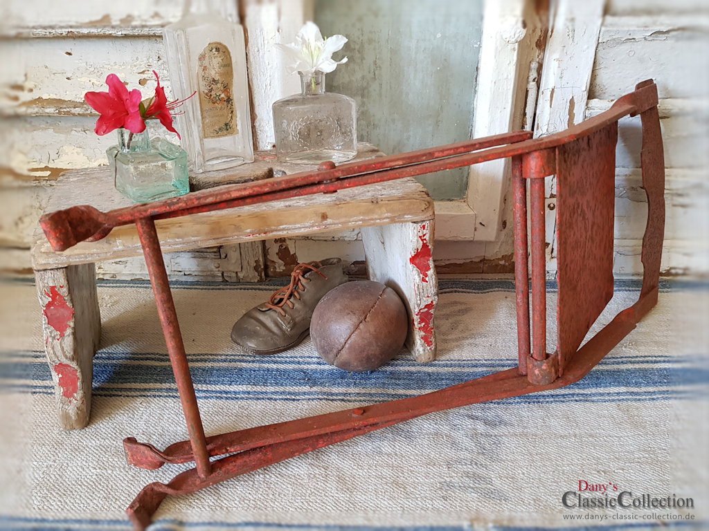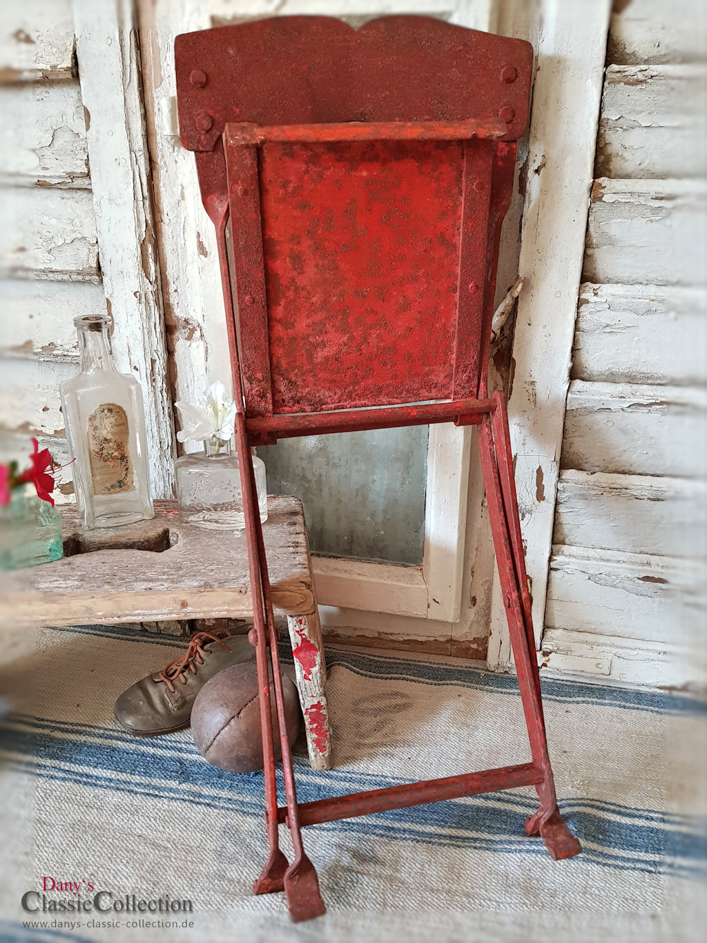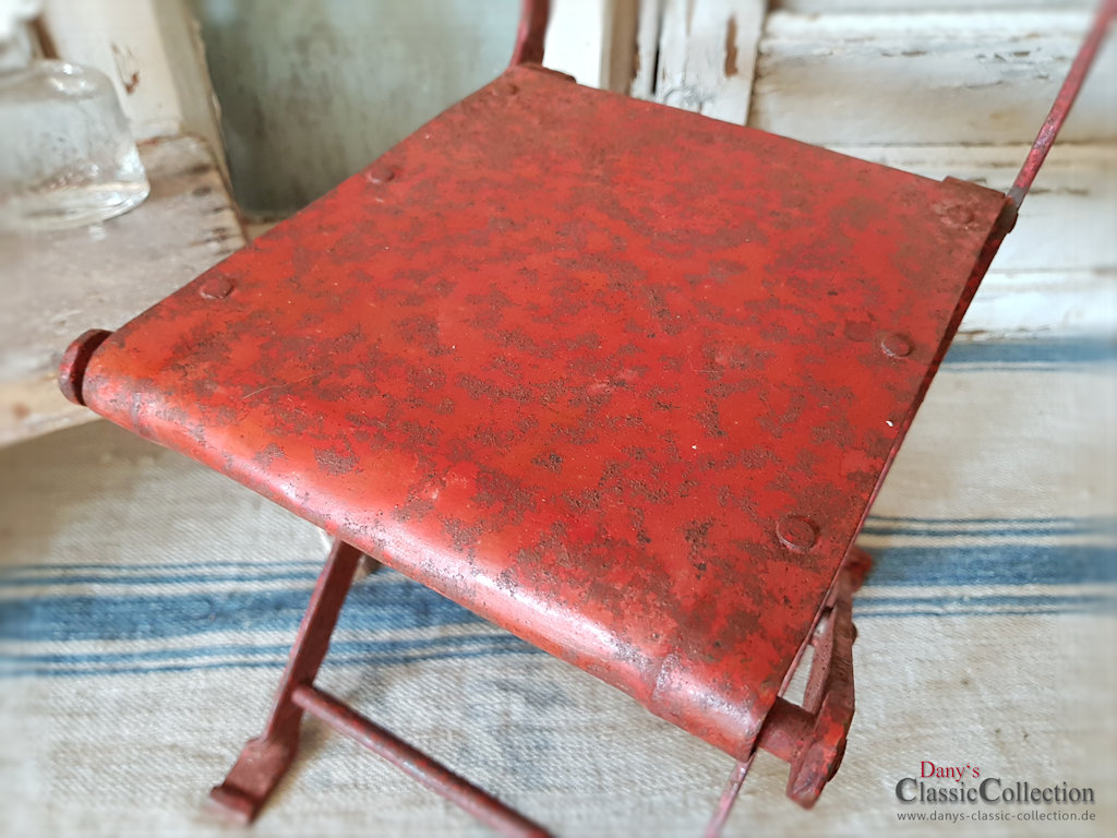 Es handelt sich um einen schweren Klappstuhl, der über die Jahre eine geradezu zauberhafte Patina angenommen hat!