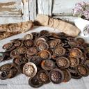 Heute kann man sie super für Vintage-Kissen als dekorative Verschlüsse, für Taschen, Mützen etc. hernehmen. Sie sind einfach hübsch und dekorativ.