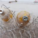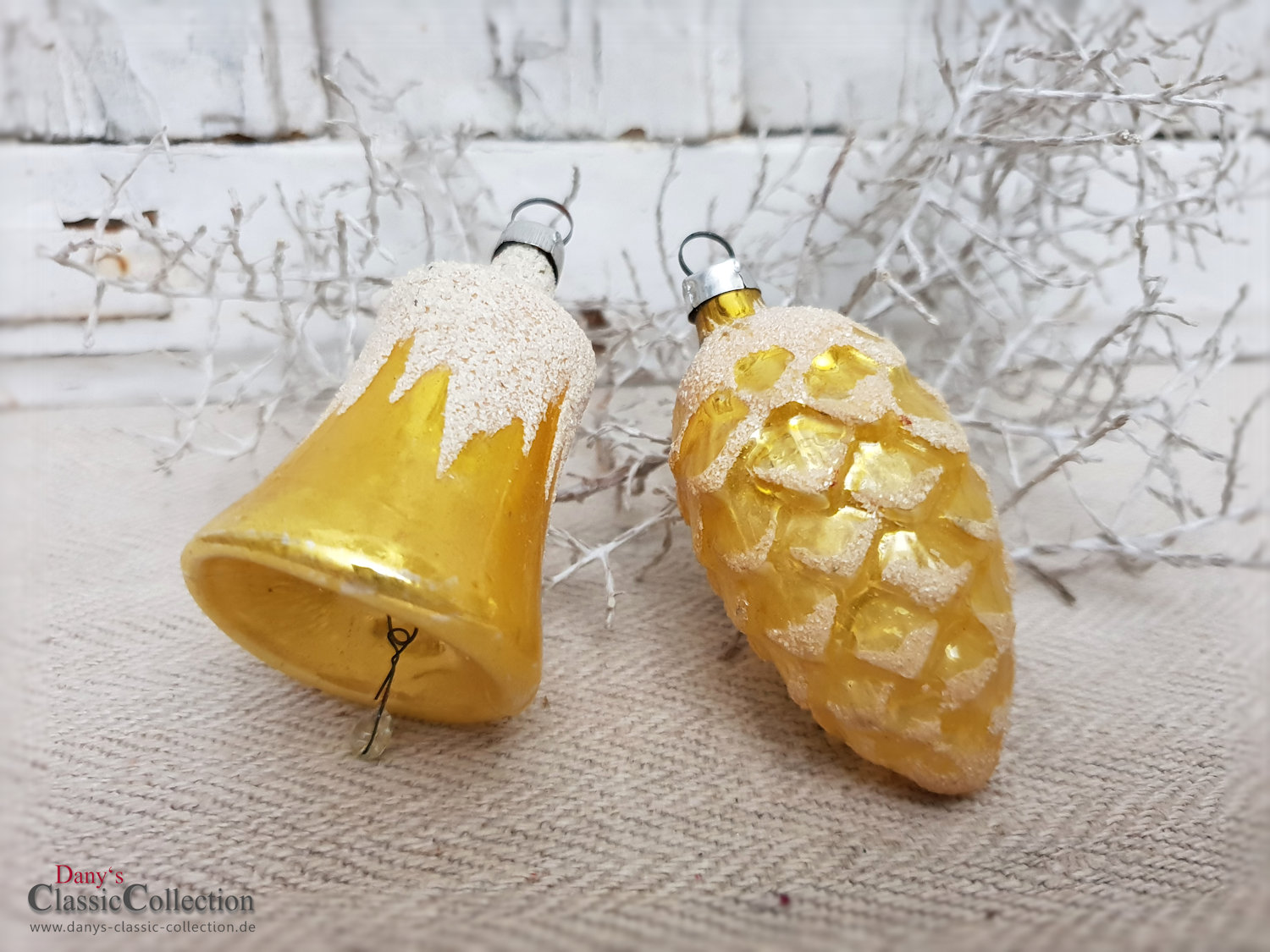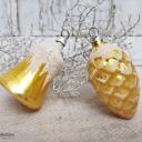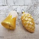 Es handelt sich um einen Zapfen mit Schnee und eine Glocke mit Schneebemalung.