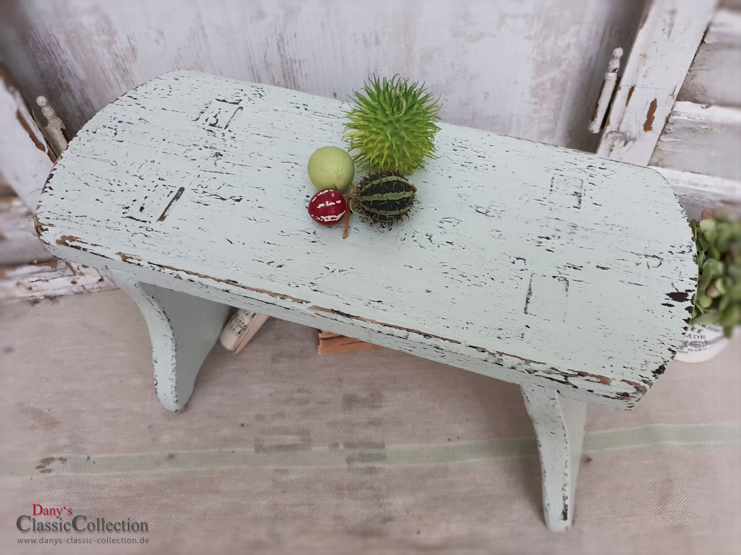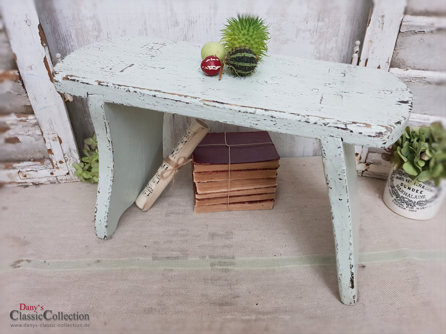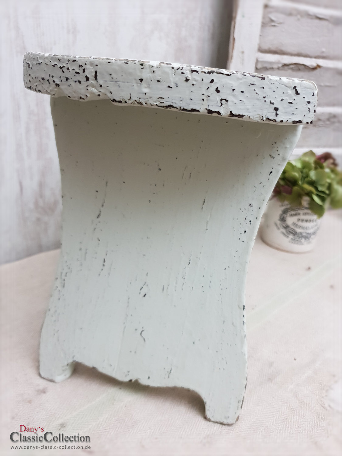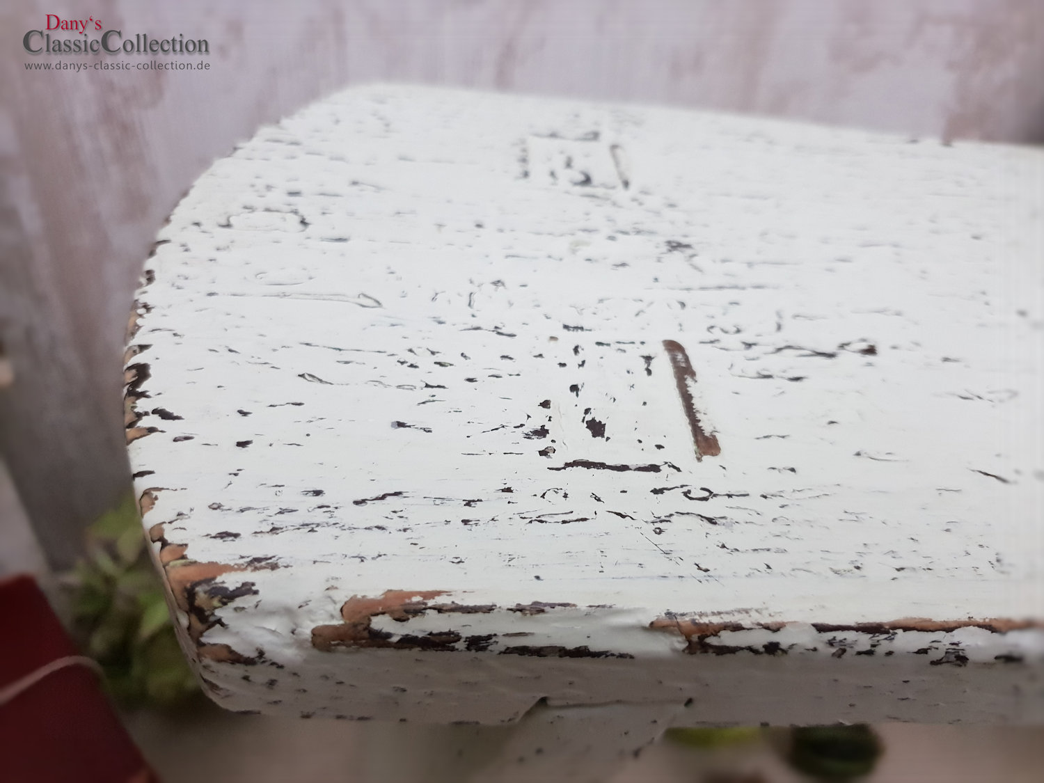 Dieser hübsche alte Hocker mit seinem abgestoßenen weißen Lack ist ein Traum für alle, die den Shabby Stil lieben. Er ist wunderbar stabil mit seinen ausgestellten Beinen.