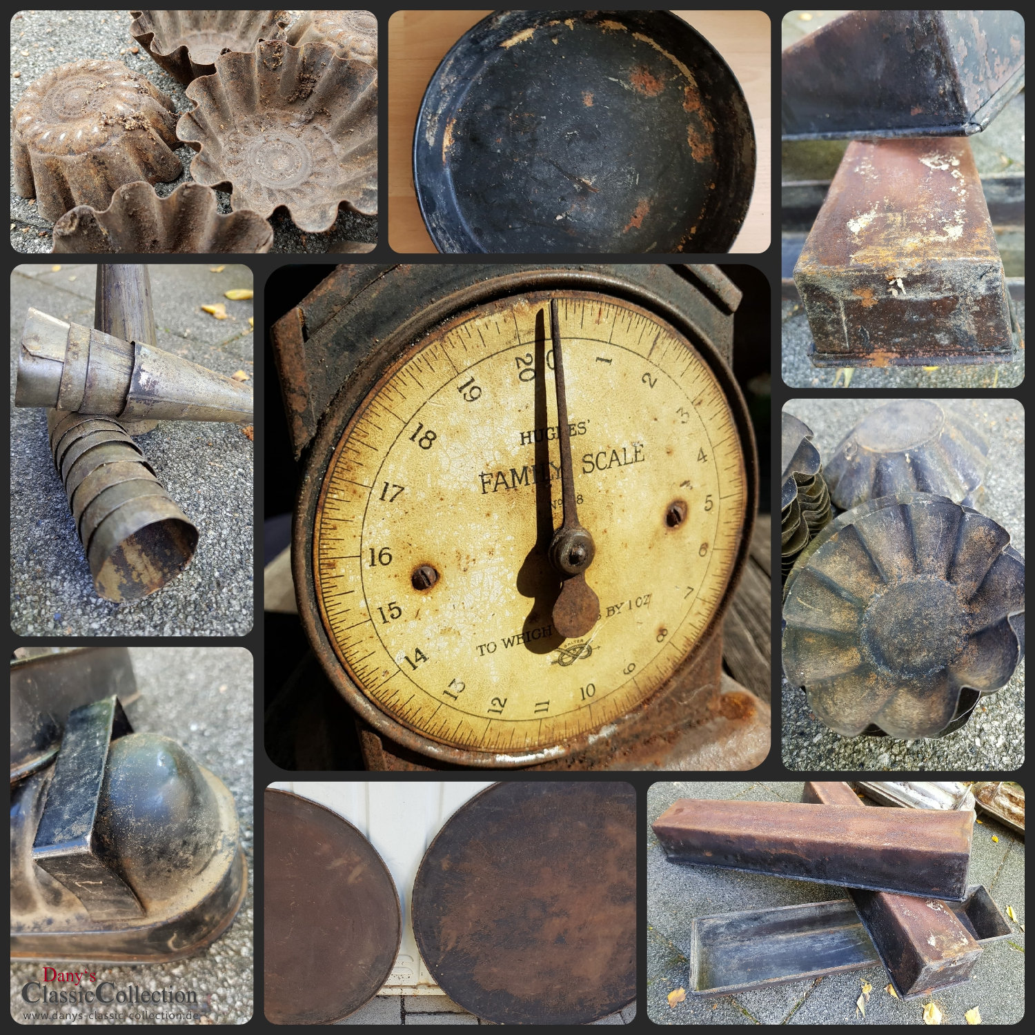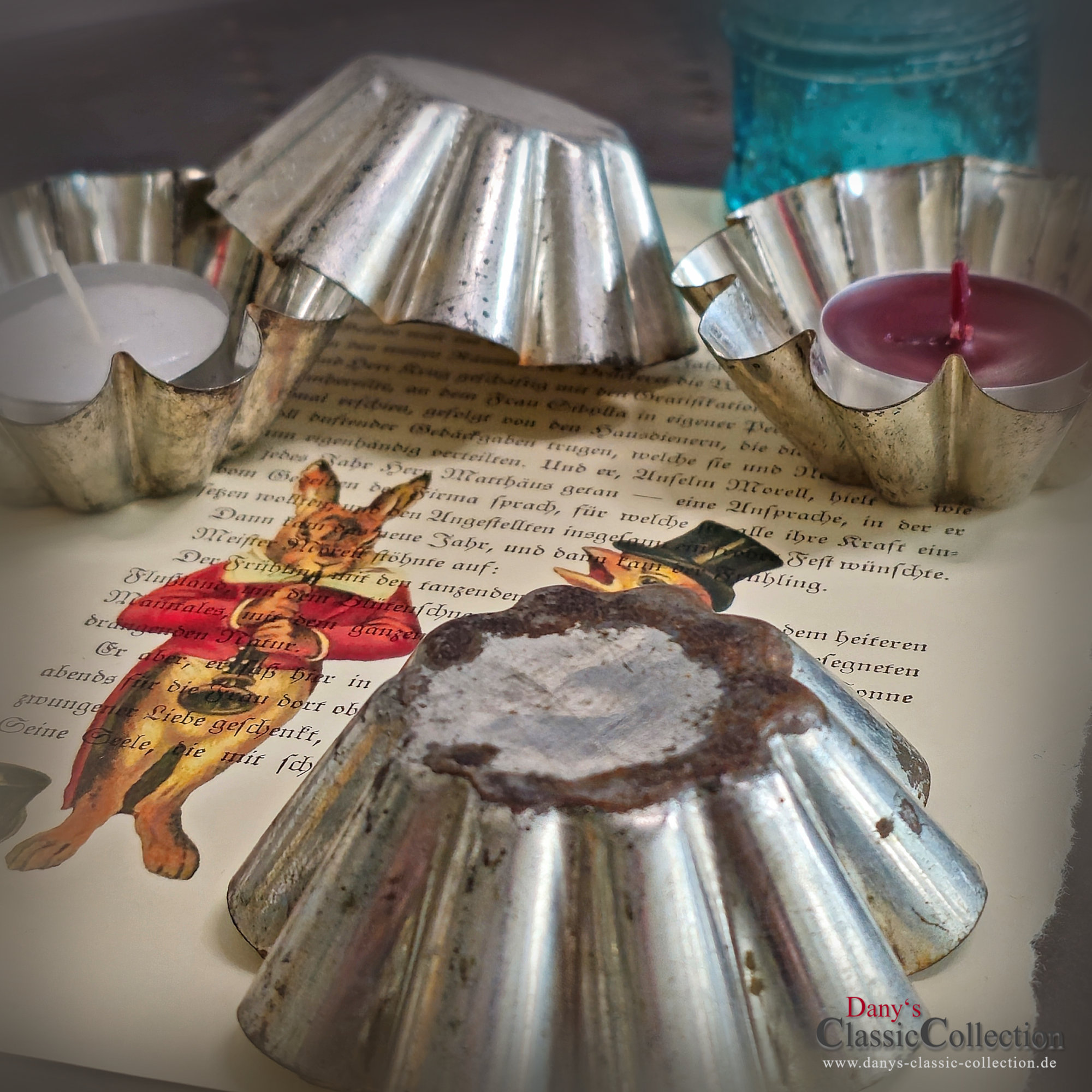 Hübsche alte Muffin Förmchen, Brioche Formen aus stabilem Weißblech mit zauberhafter Patina.