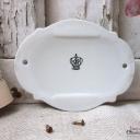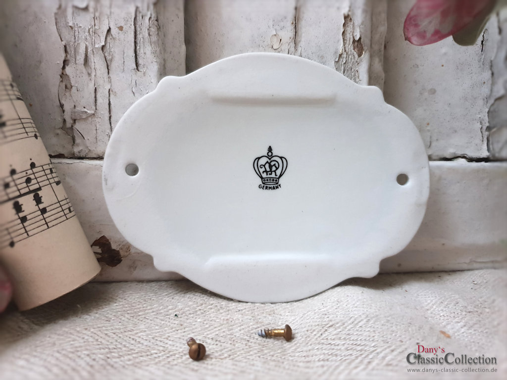 Es besitzt seitlich Löcher zum Fixieren. Zwei kleine Schrauben gehören auch dazu. Die Rückseite ziert eine Porzellanmarke, die ich leider nicht identifizieren kann.