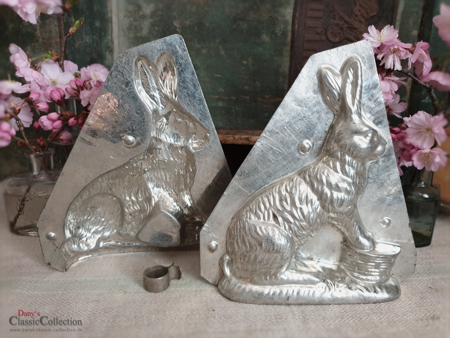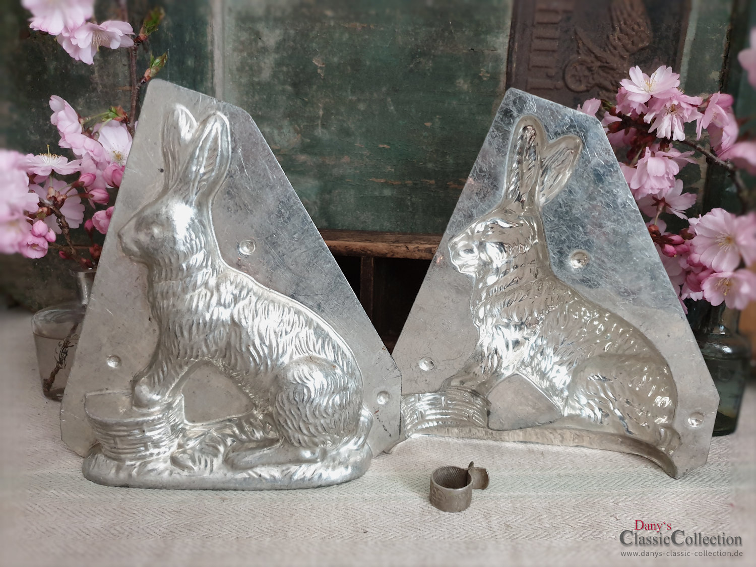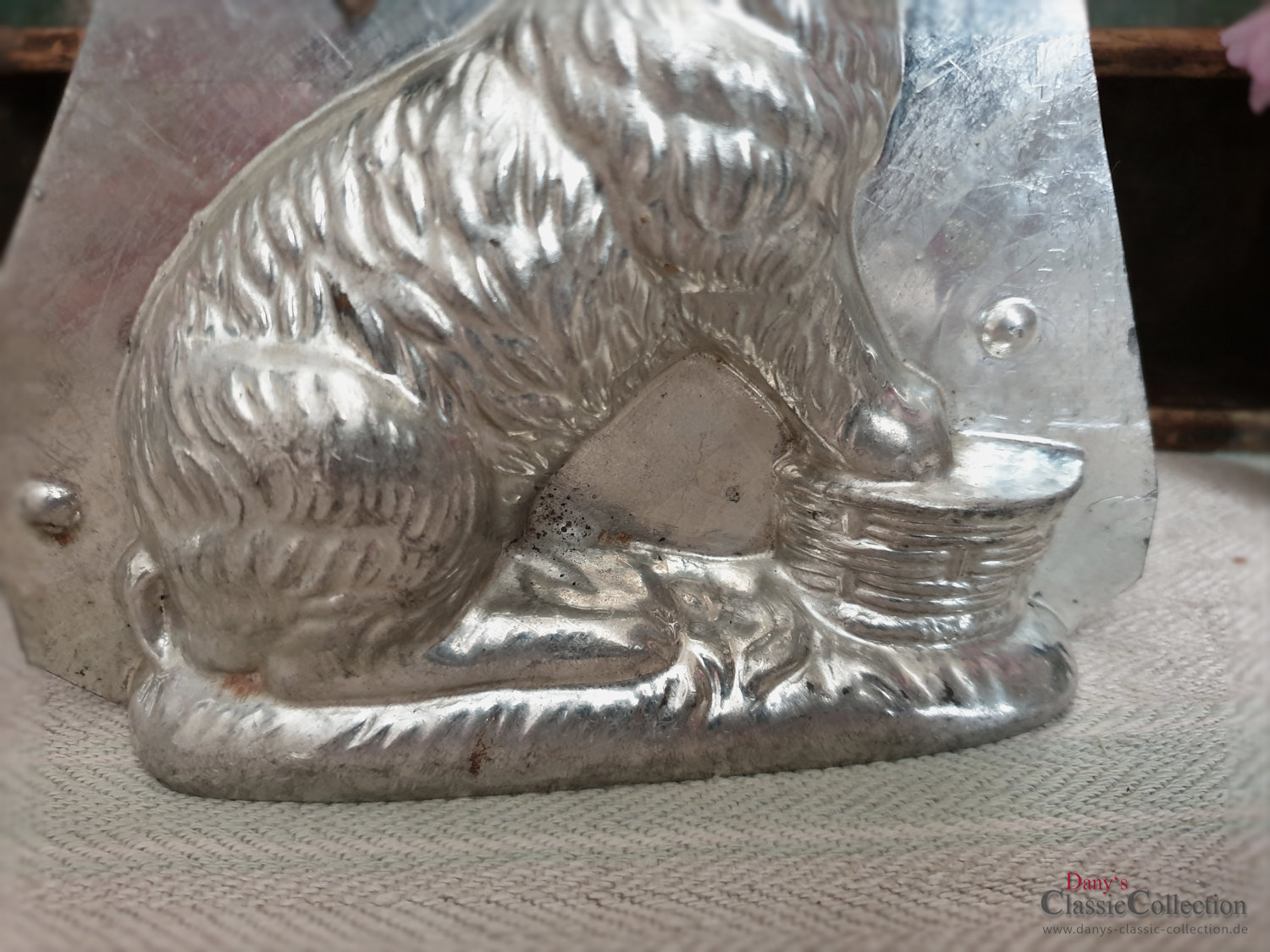 Schöne sehr alte Hasen Schokoladenform mit zauberhafter Patina, die heute ein tolles Dekostück abgibt, nicht nur für die Osterzeit.