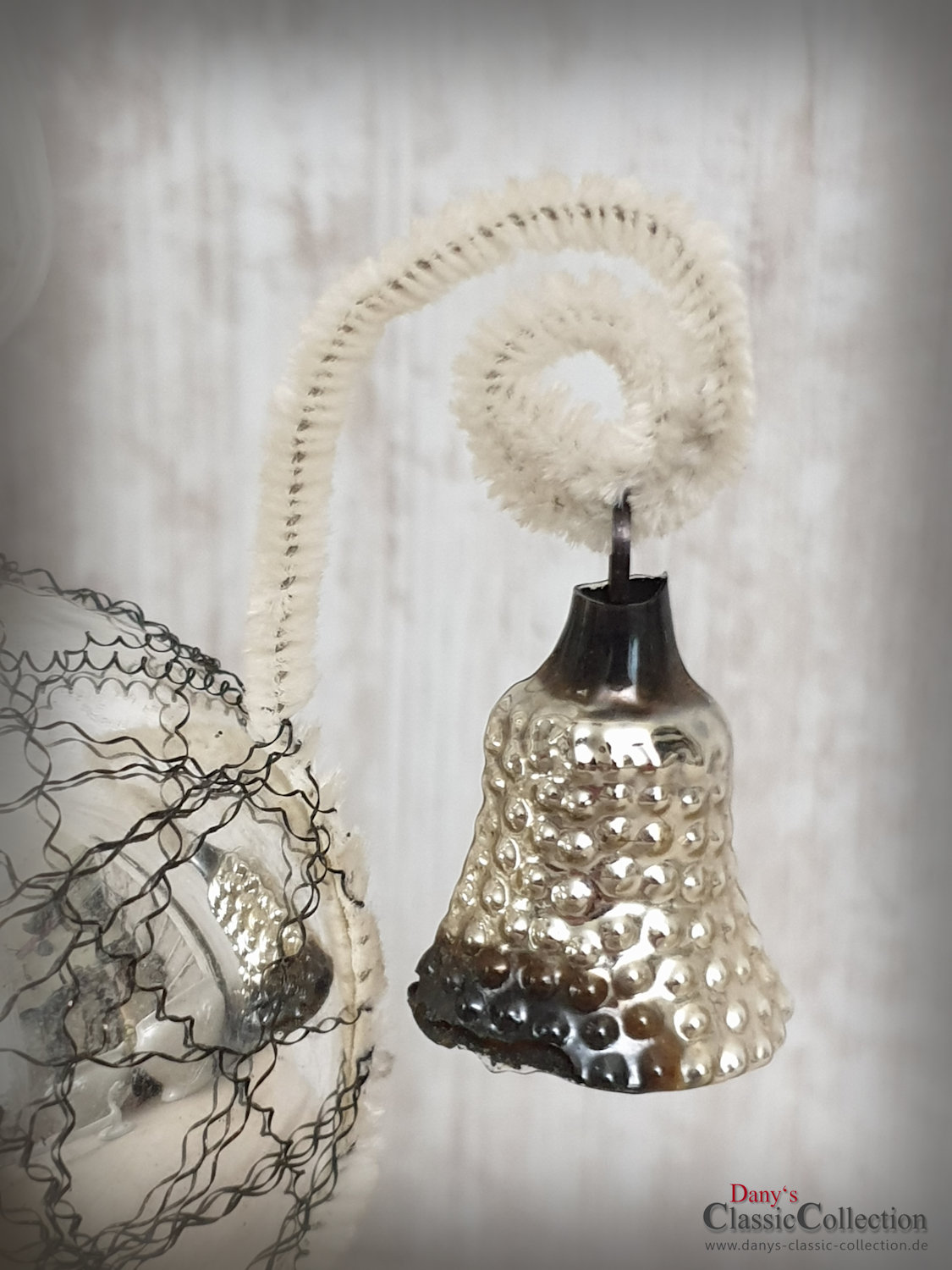 Wunderschöne alte Christbaumspitze aus feinsten Glas mit 2 Glöckchen.