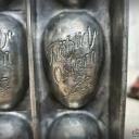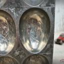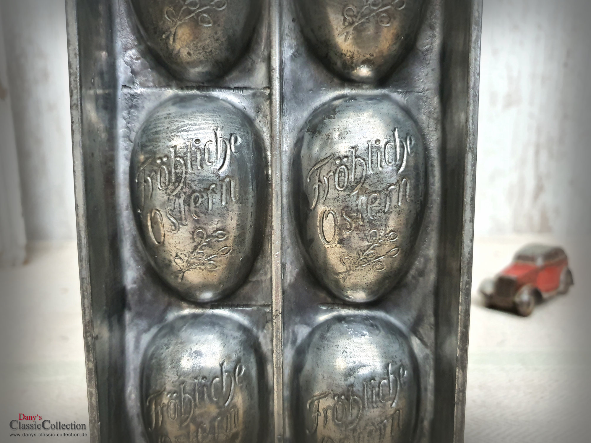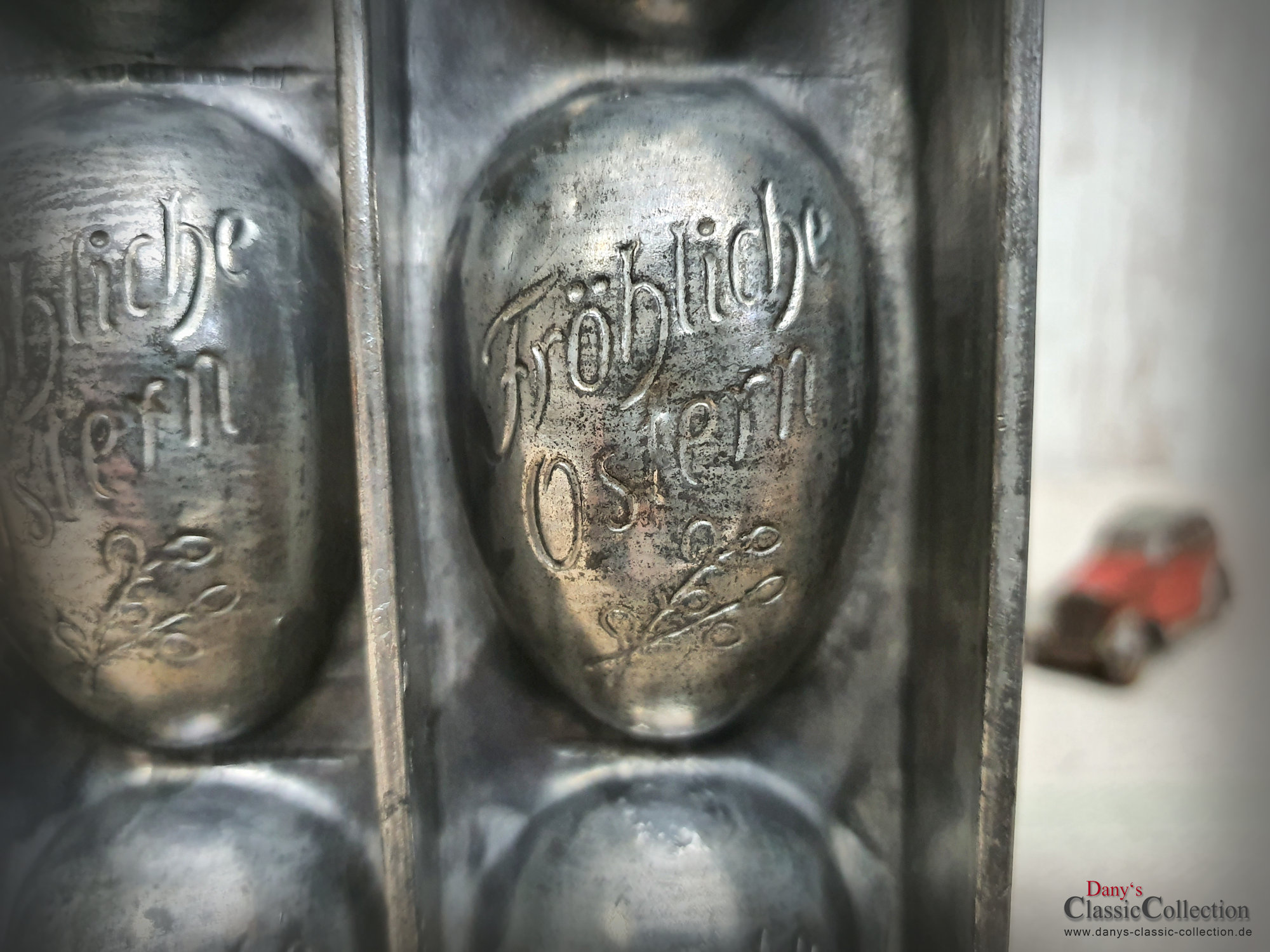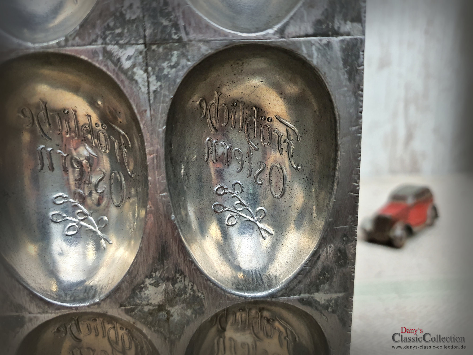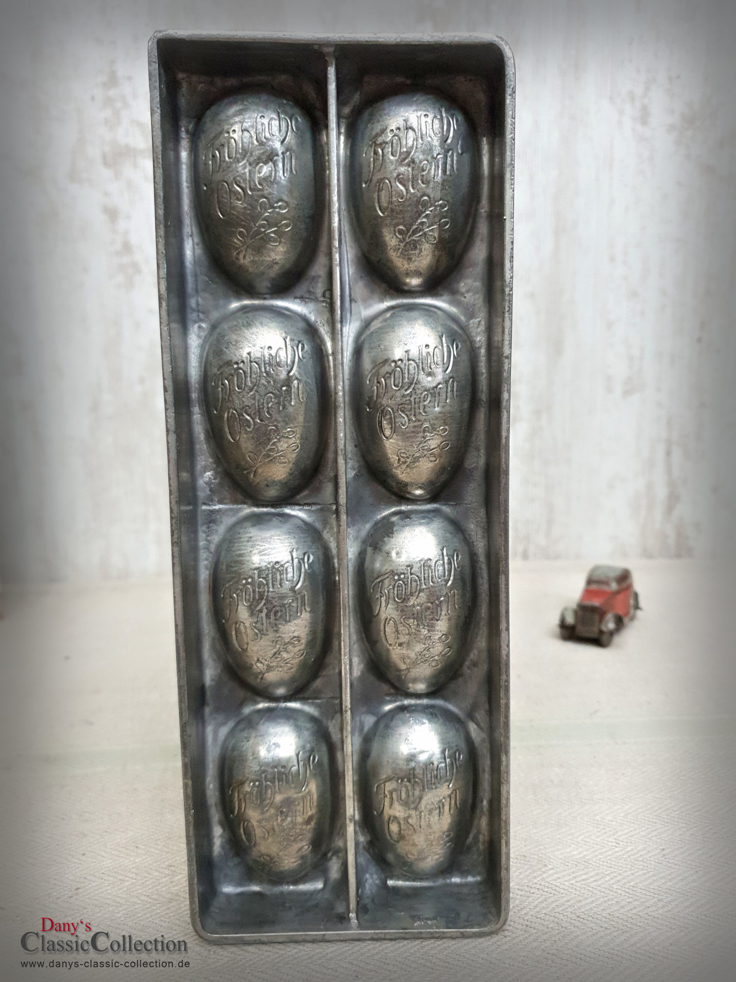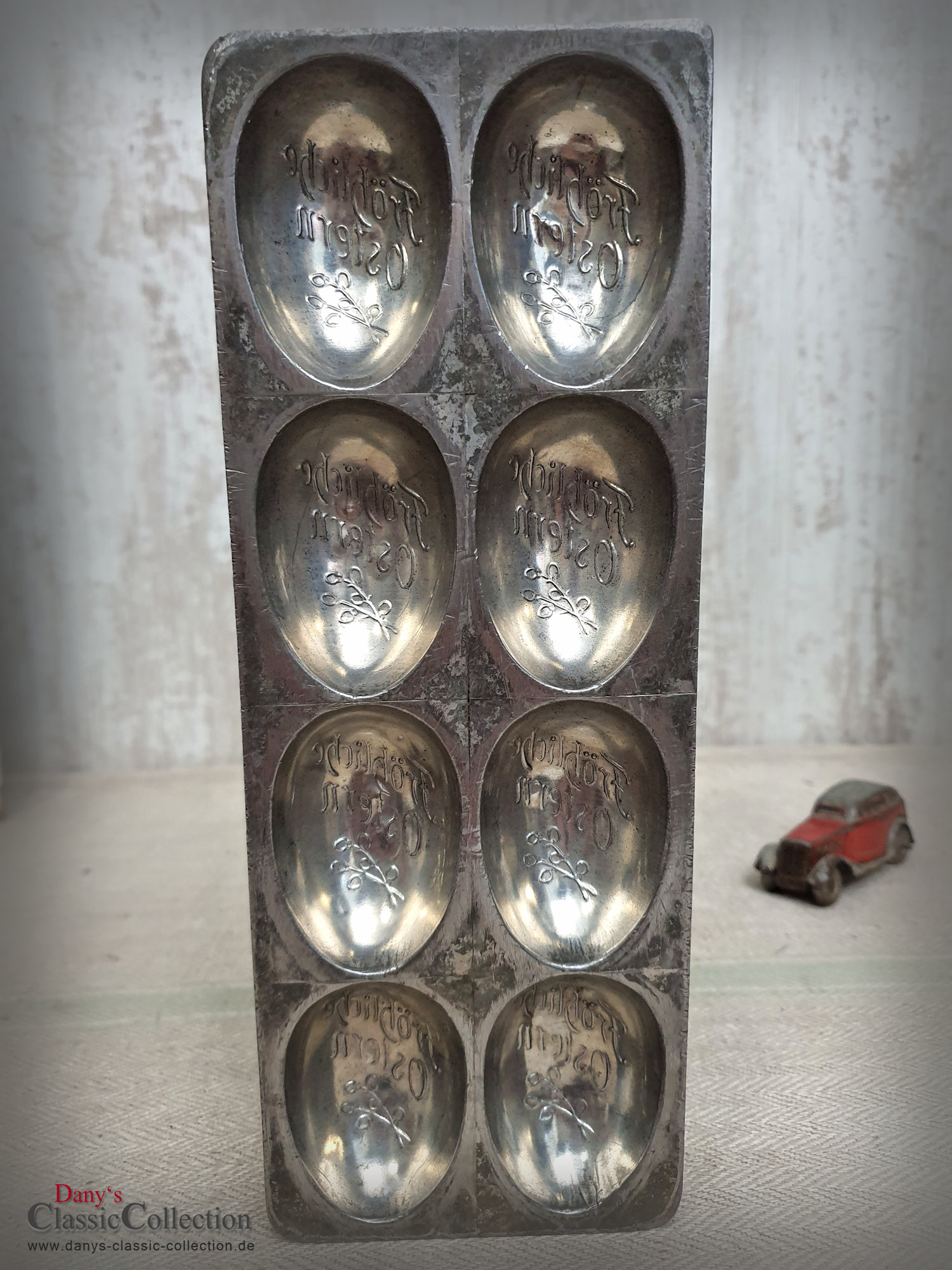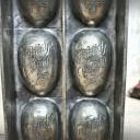 Dekorative alte Schokoladenform, Flachform - 8 sensationell gearbeitete Eier mit Blumendekor und Inschrift: Fröhliche Ostern.