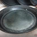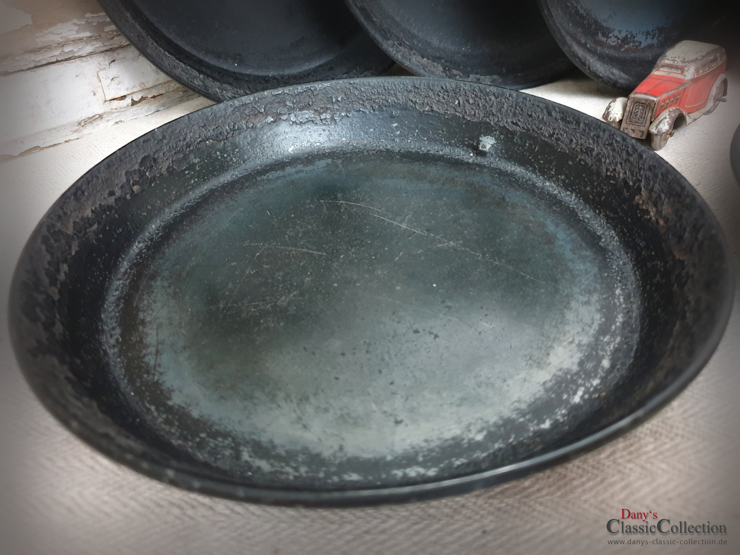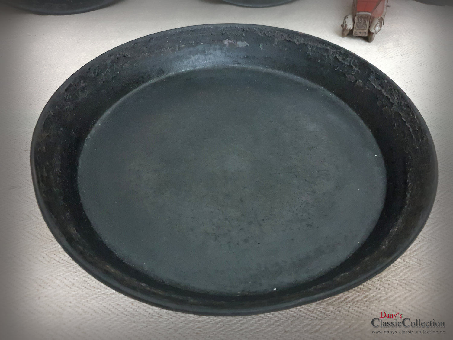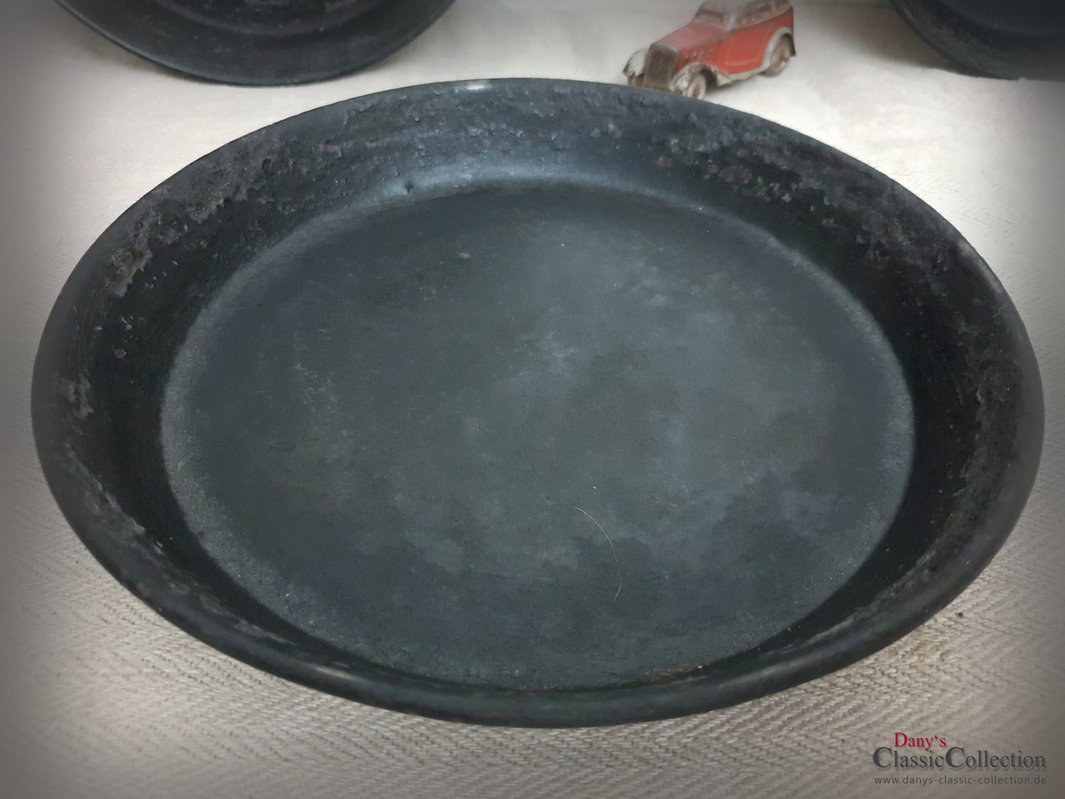Schöne runde Bodenformen, Backbleche, Kuchenbleche, Tartebleche, Pizzableche mit zauberhafter Patina, die sehr unterschiedlich ausgeprägt ist.