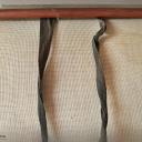 Das Motiv wird auf Papier gedruckt, dann auf Leinwand gezogen und an zwei schwarzen Rundhölzern befestigt.