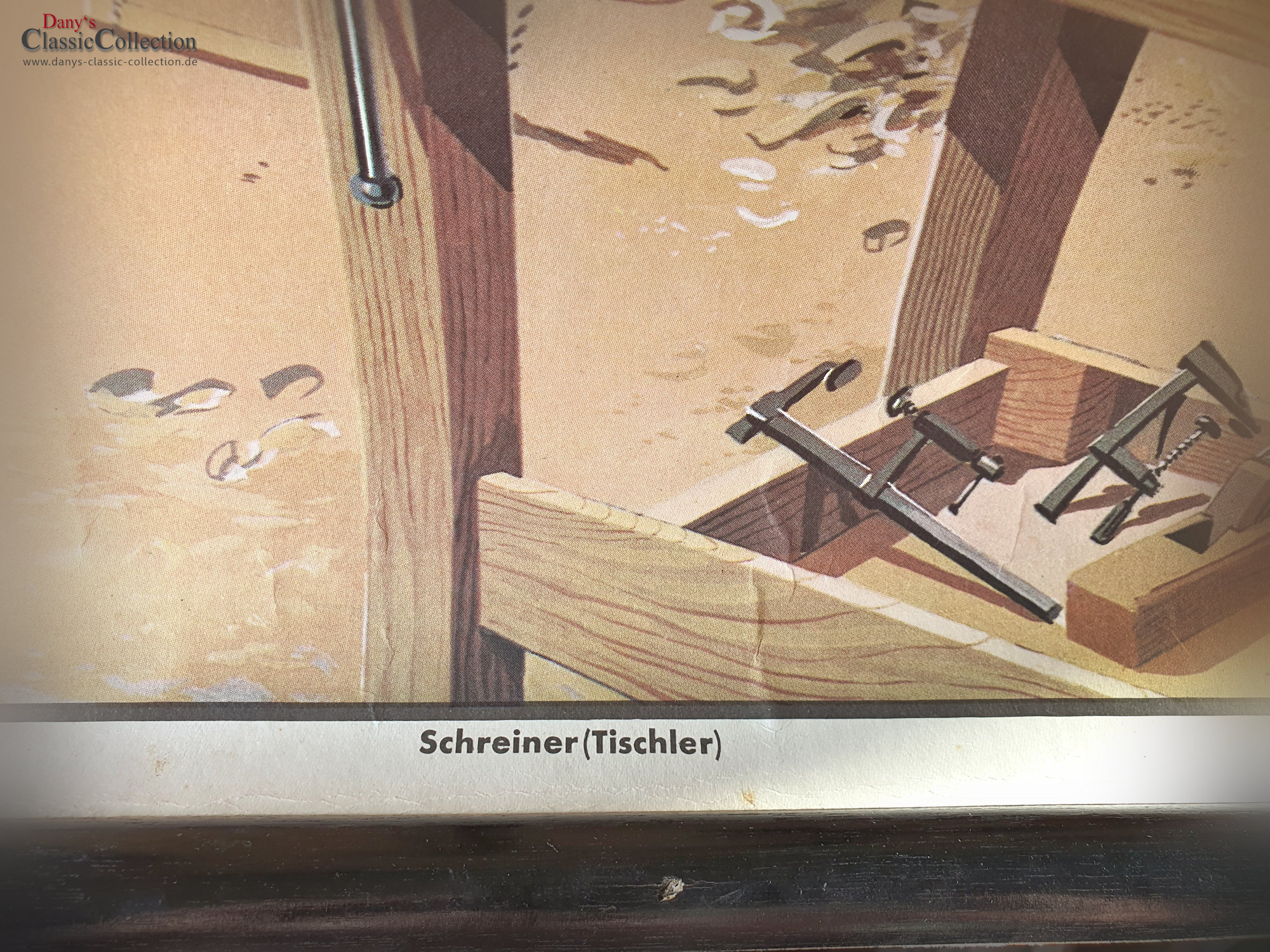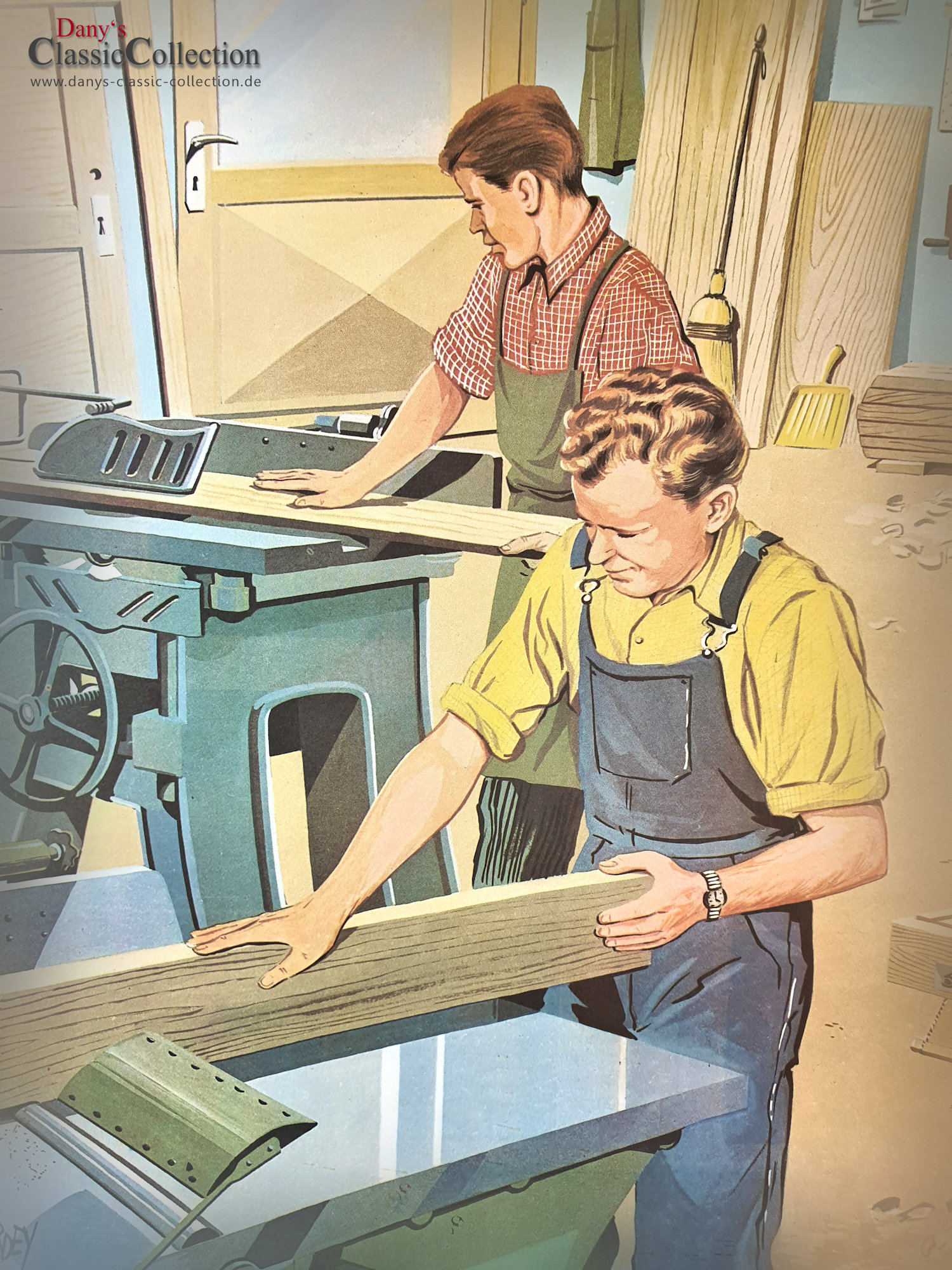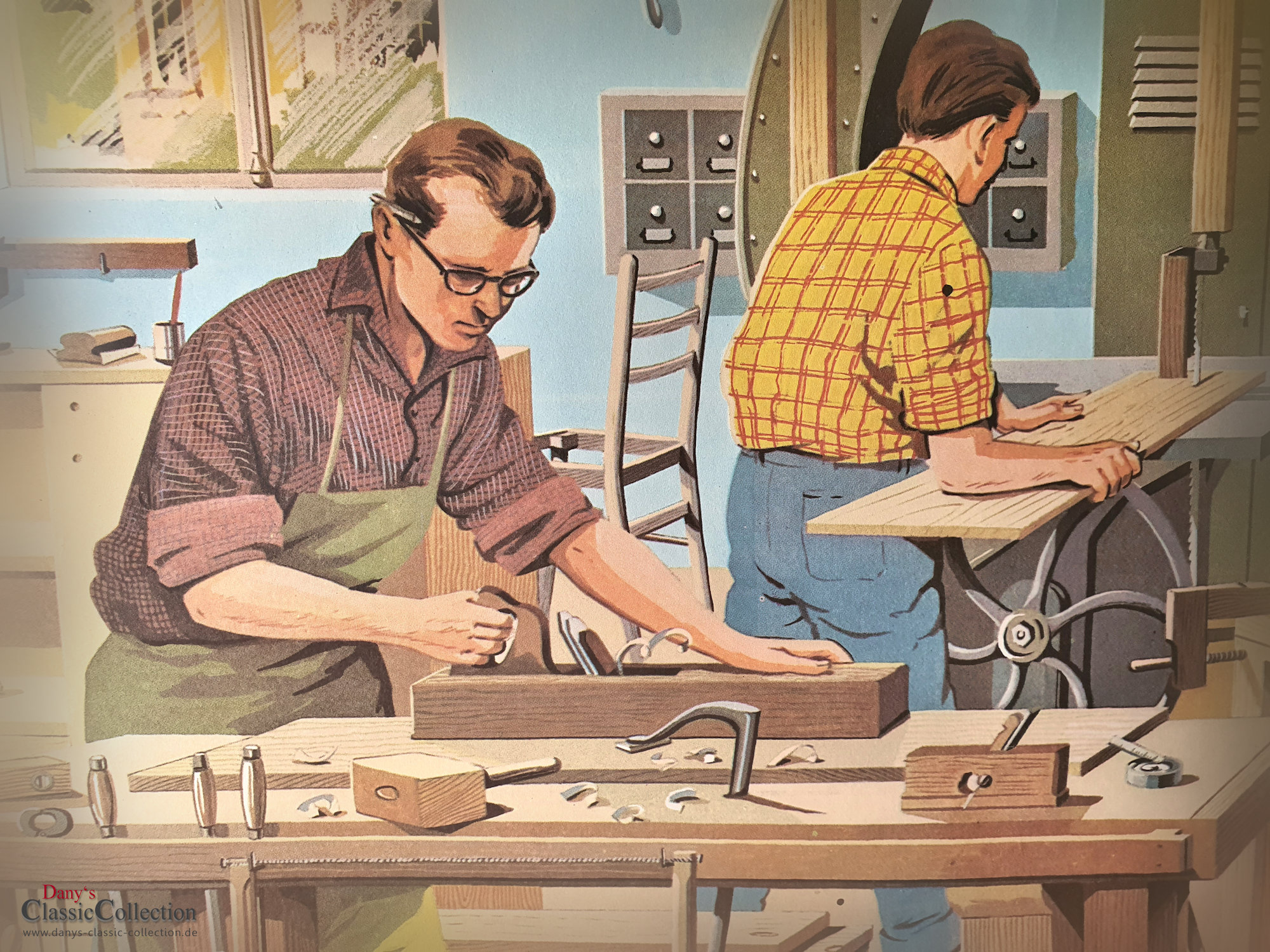 Gezeigt wird das Tischler-/Schreinerhandwerk, wie es in den 1960iger Jahren ablief.