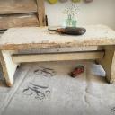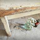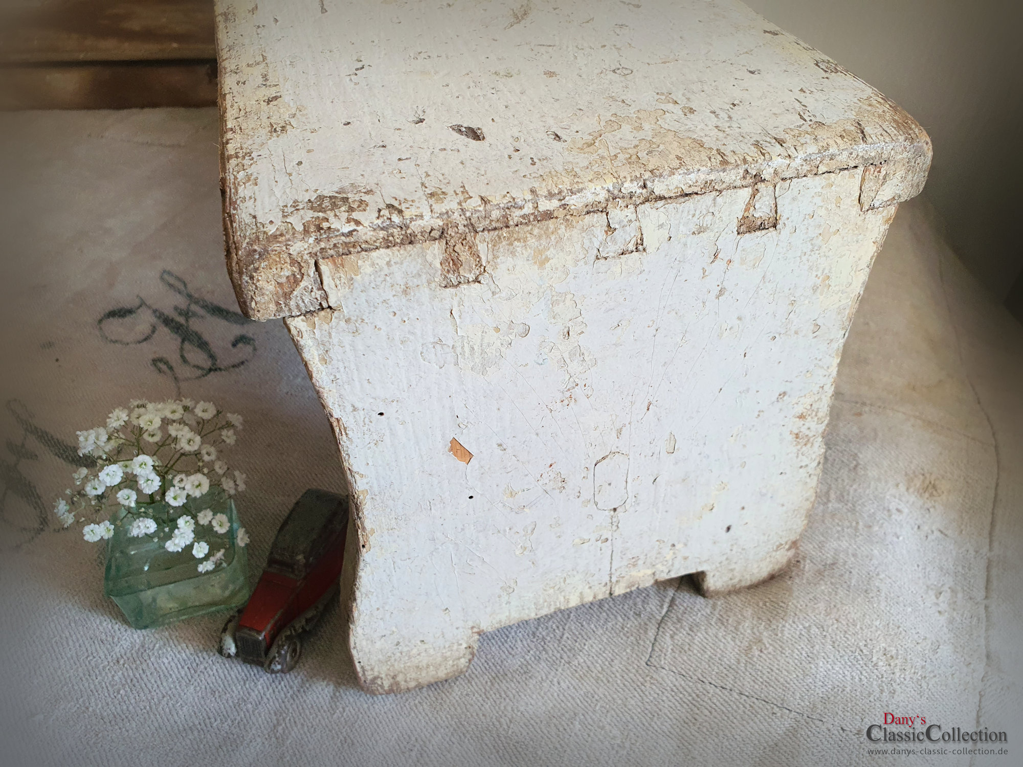 Stabiler handgefertigter Hocker in einem tollen shabby altweiß mit zauberhafter Patina!