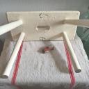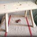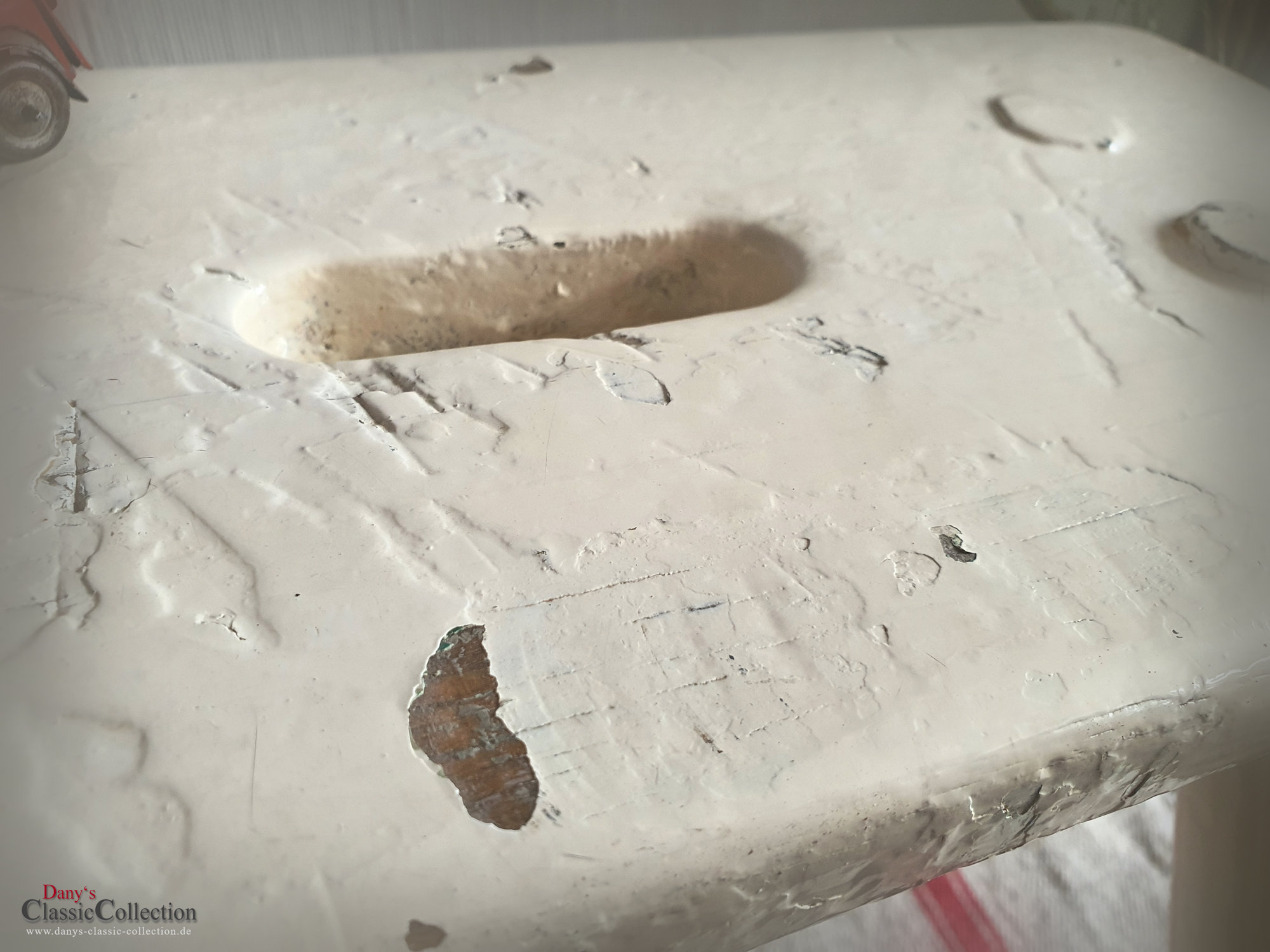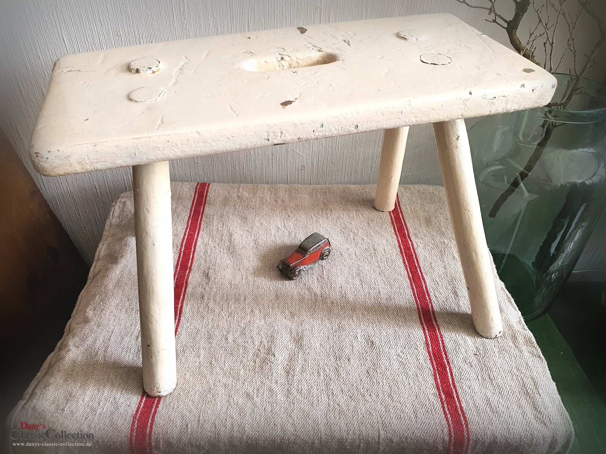 Toller alter Holz Schemel mit creme weißen Originallack.