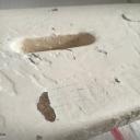 Er ist handgeschnitzt, dadurch von einer zur anderen Seite ein wenig abschüssig.