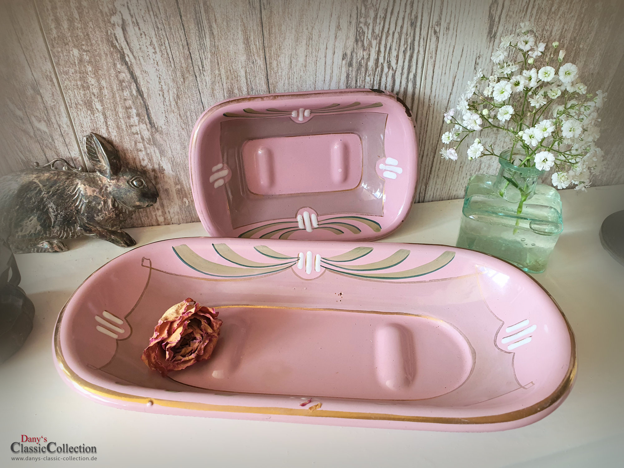 Wunderschöne Seifenschalen mit zauberhafter Patina durch den einen oder anderen Abplatzer.