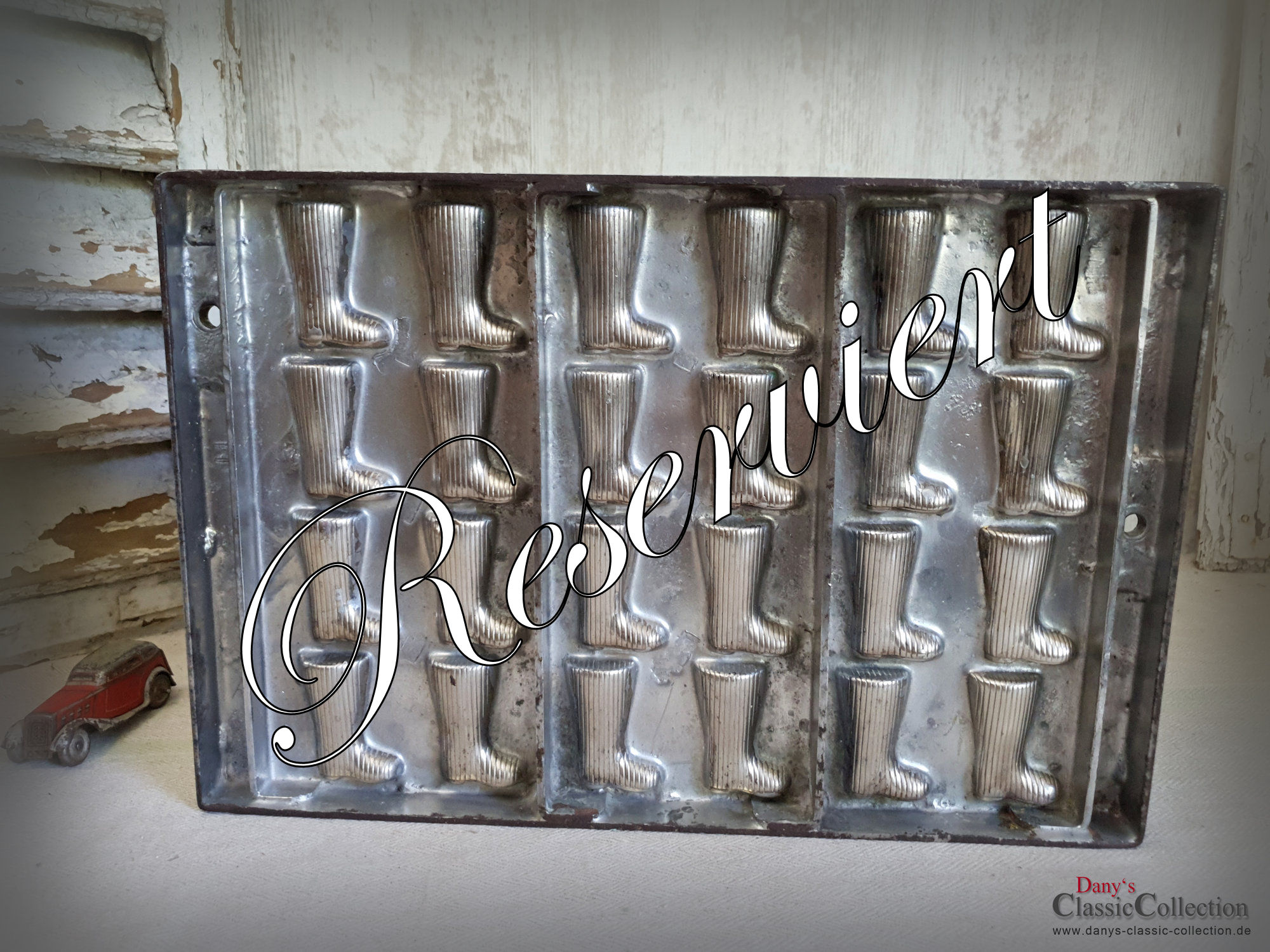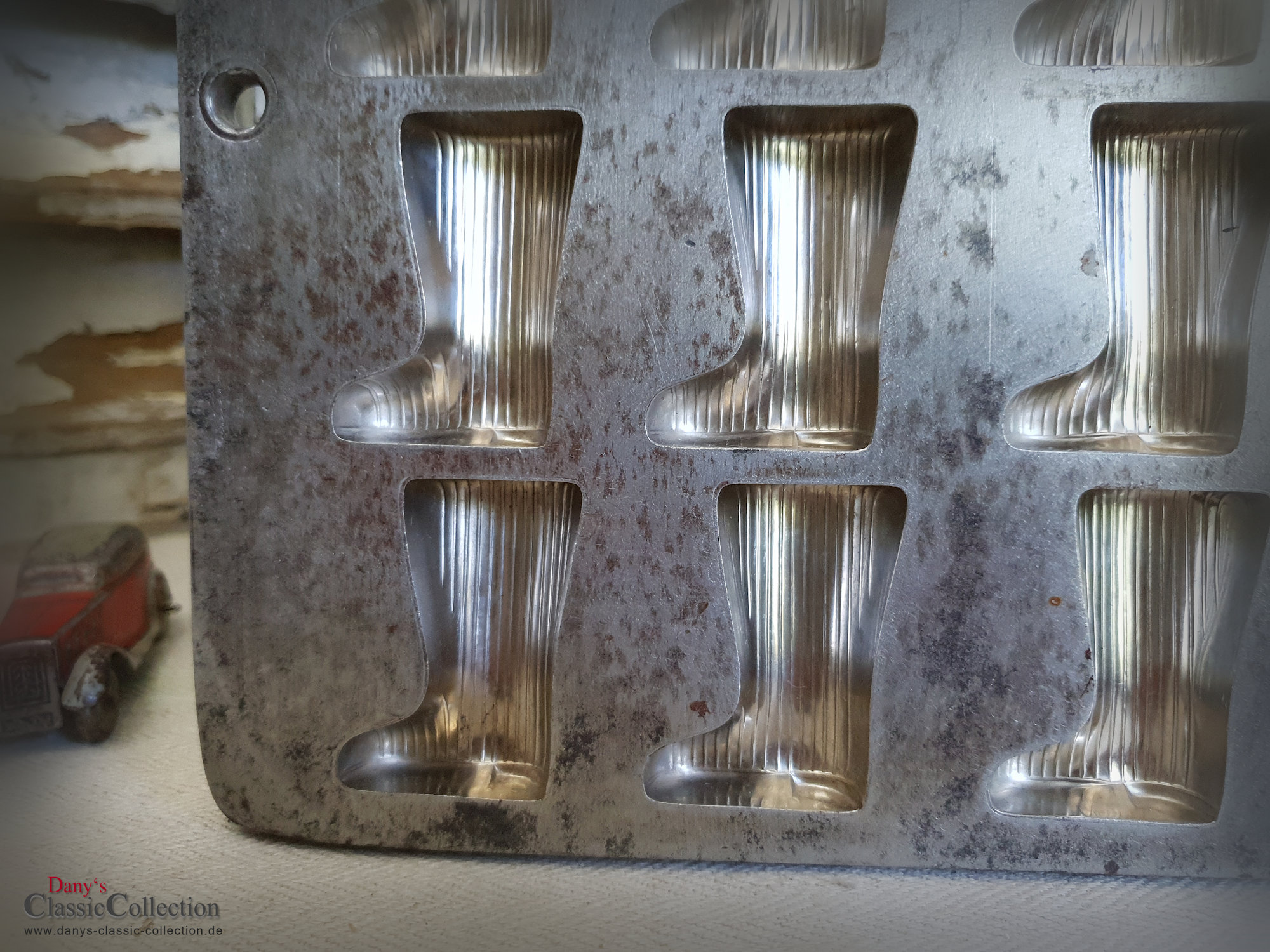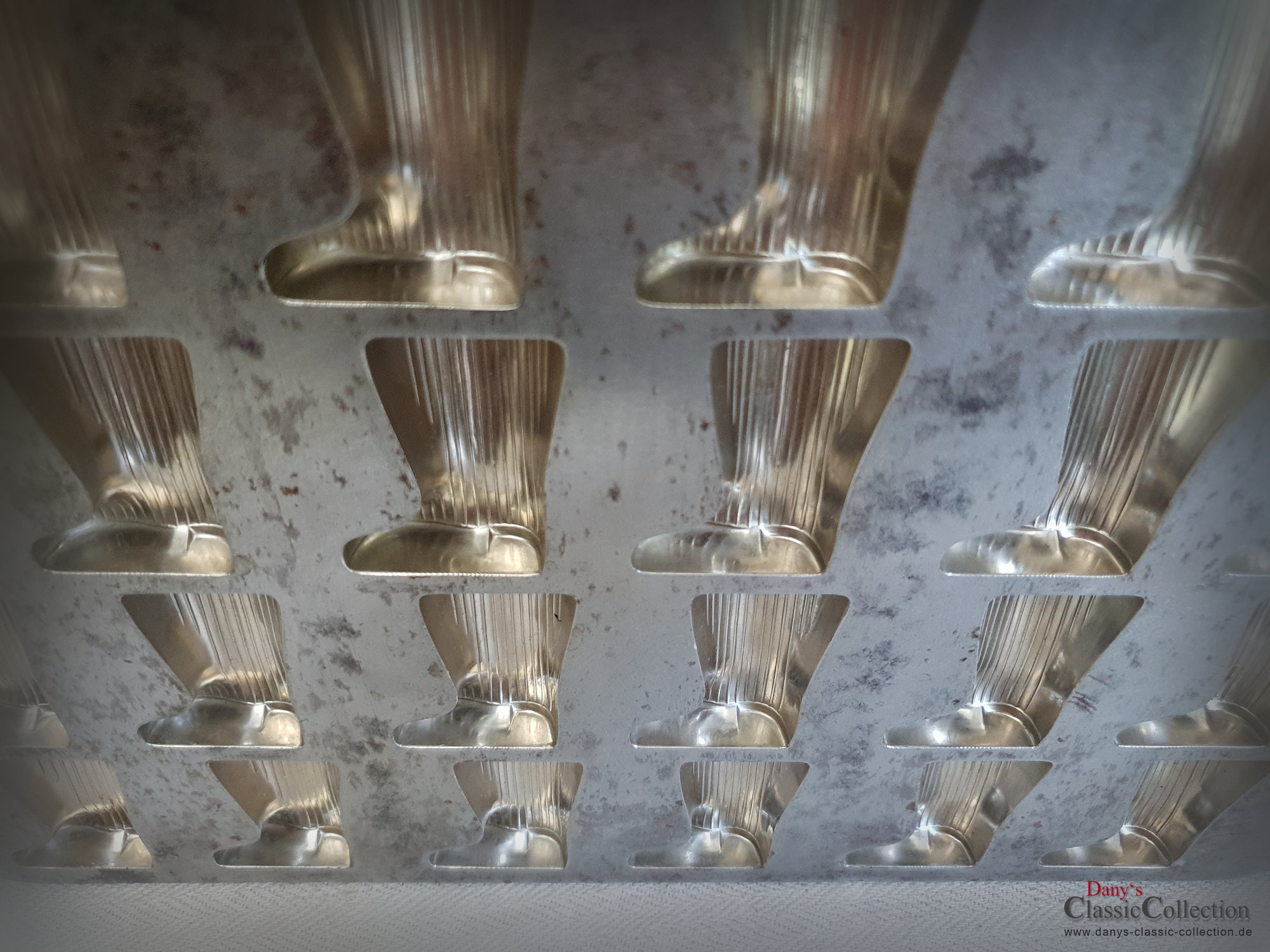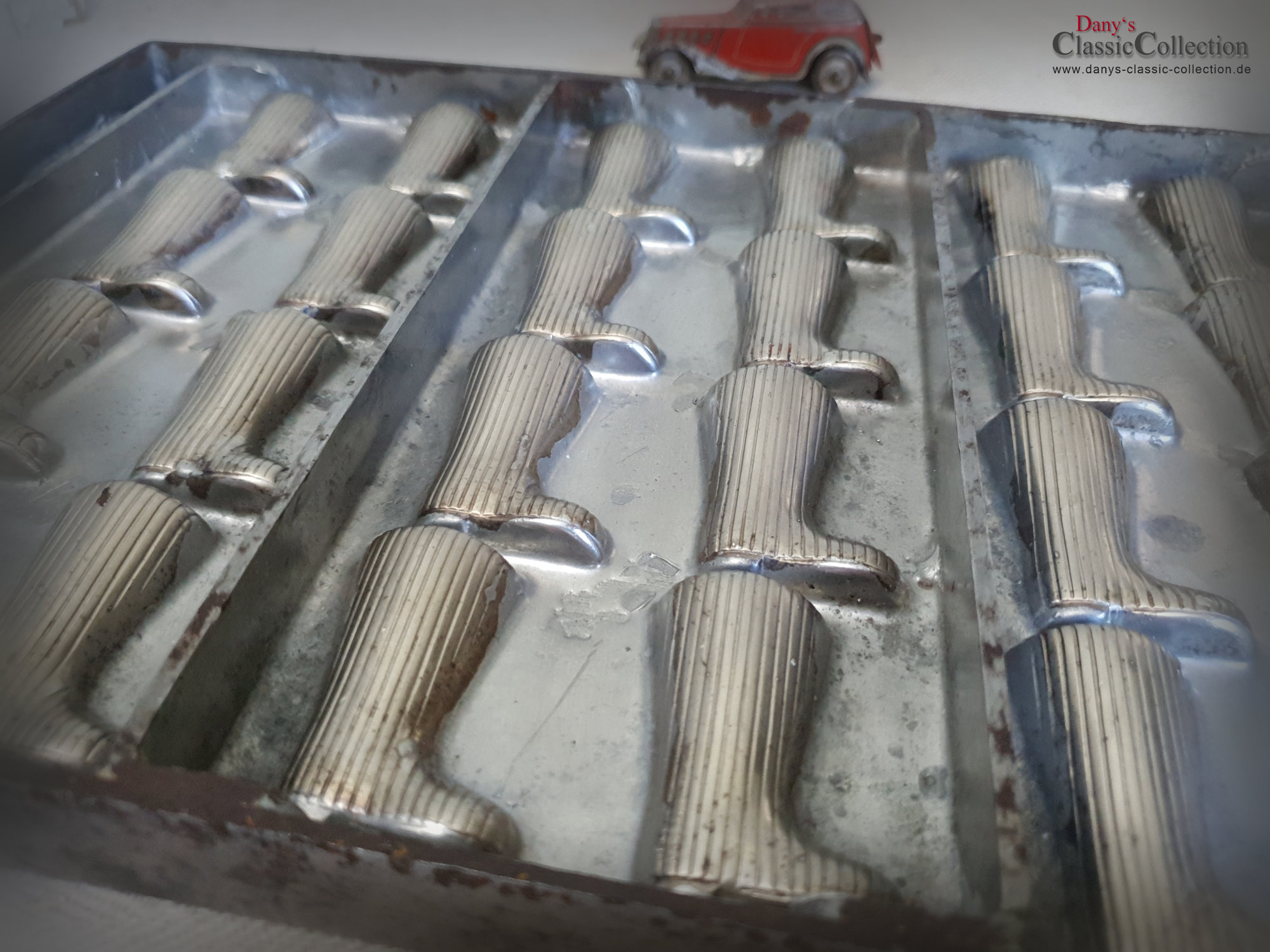 Tolle alte Schokoladenform, Flachform mit 24 Stiefeln - Nikolaus-Stiefeln oder Gummistiefeln - ganz wie man möchte.