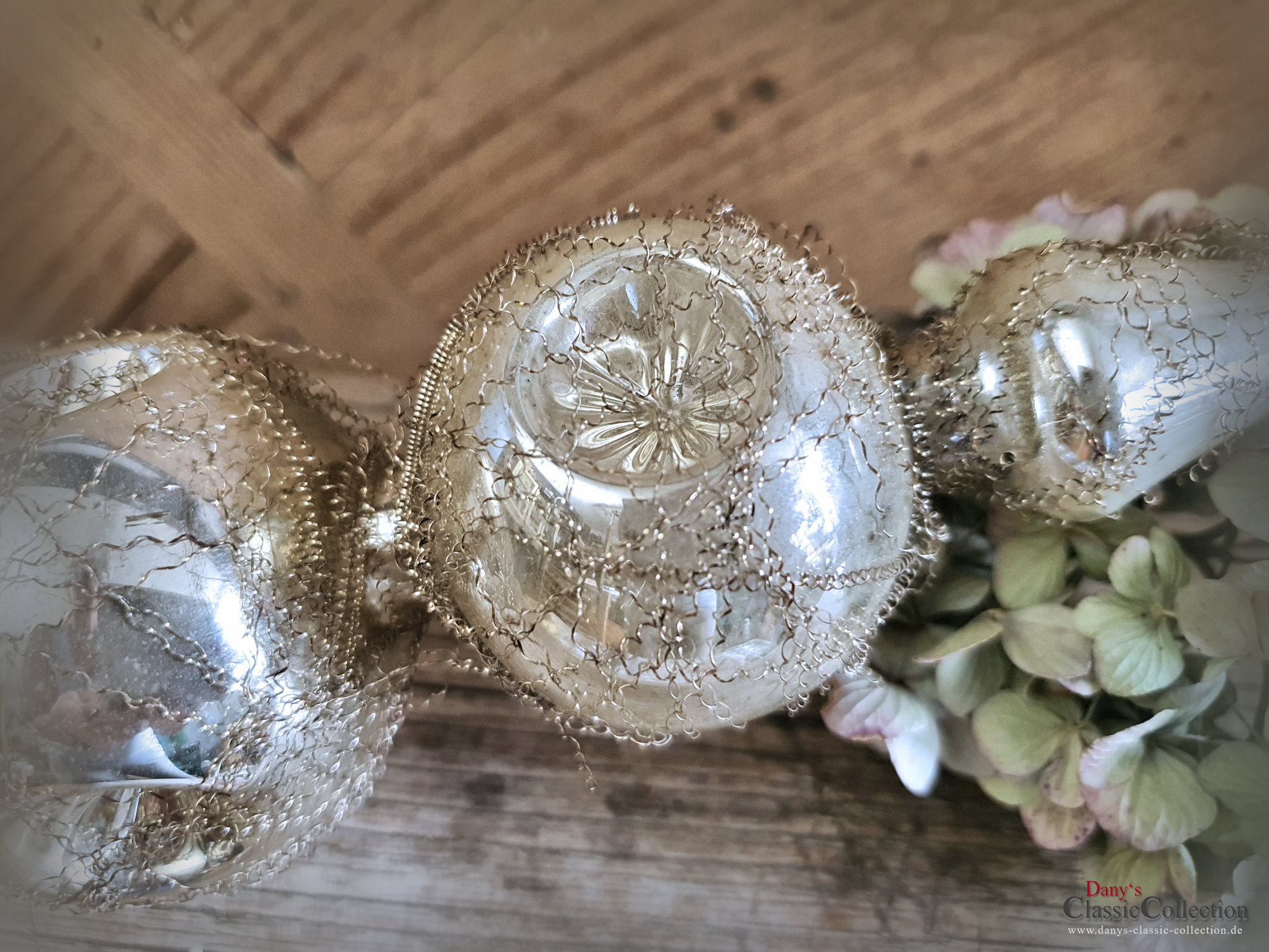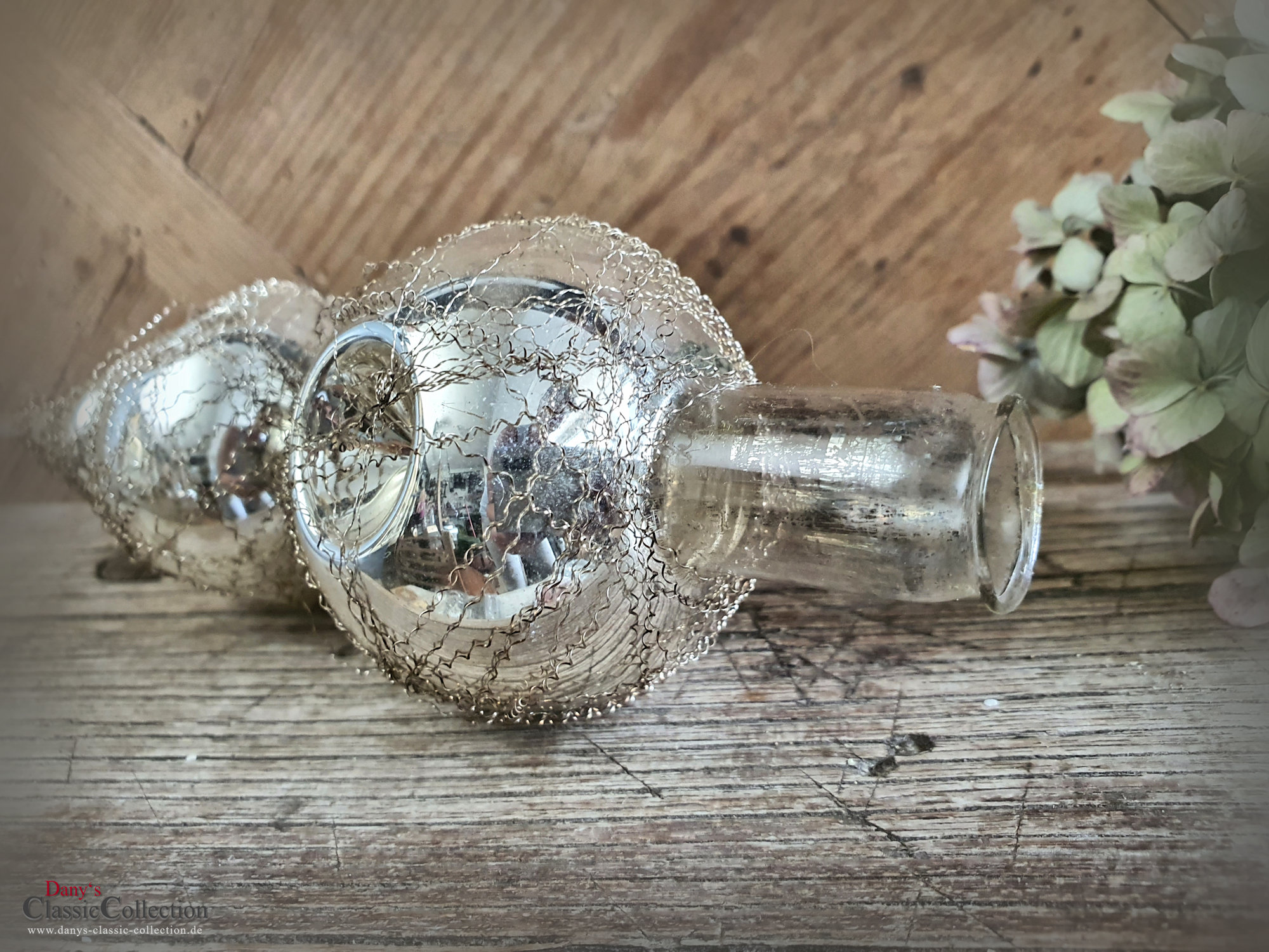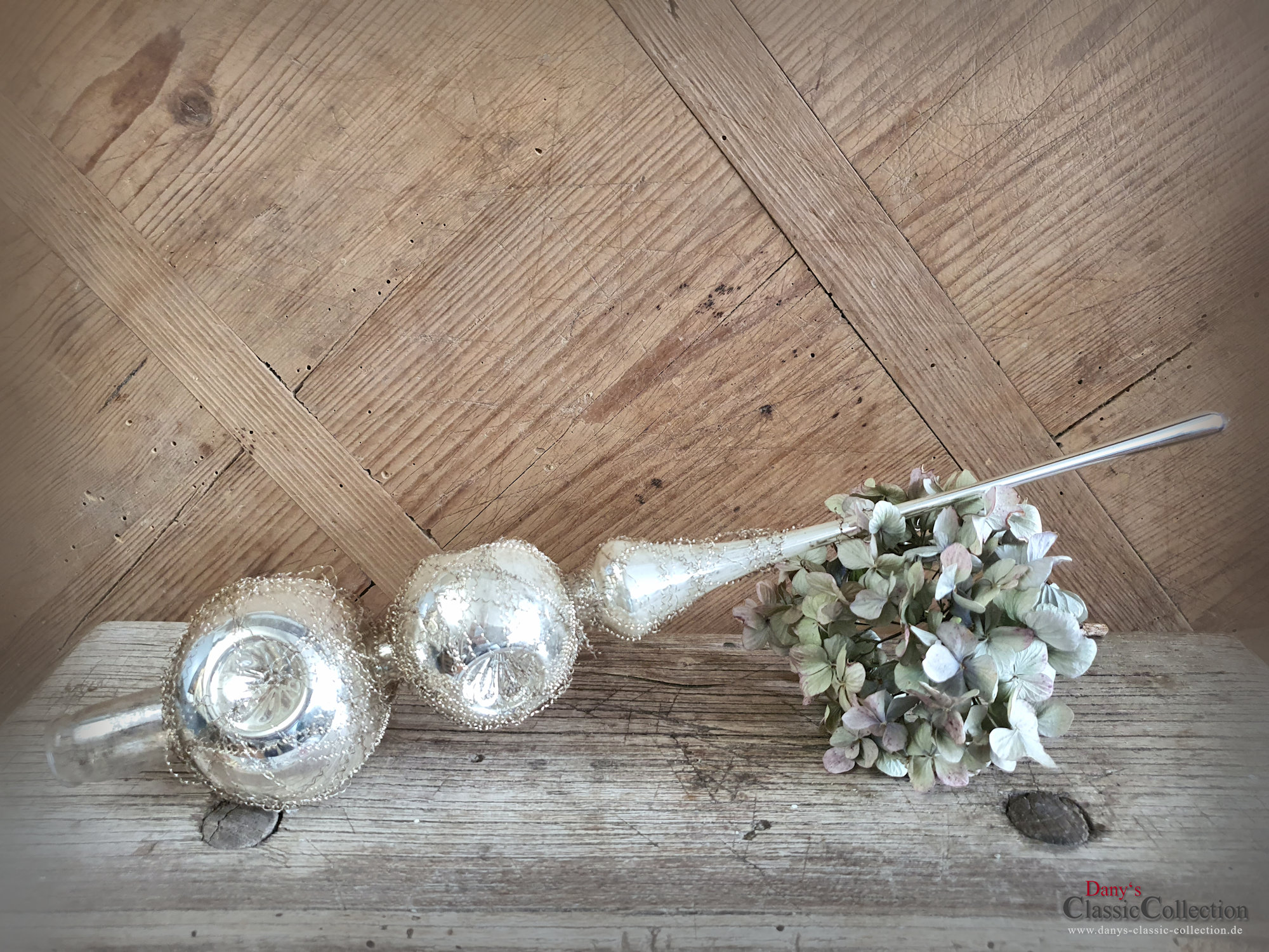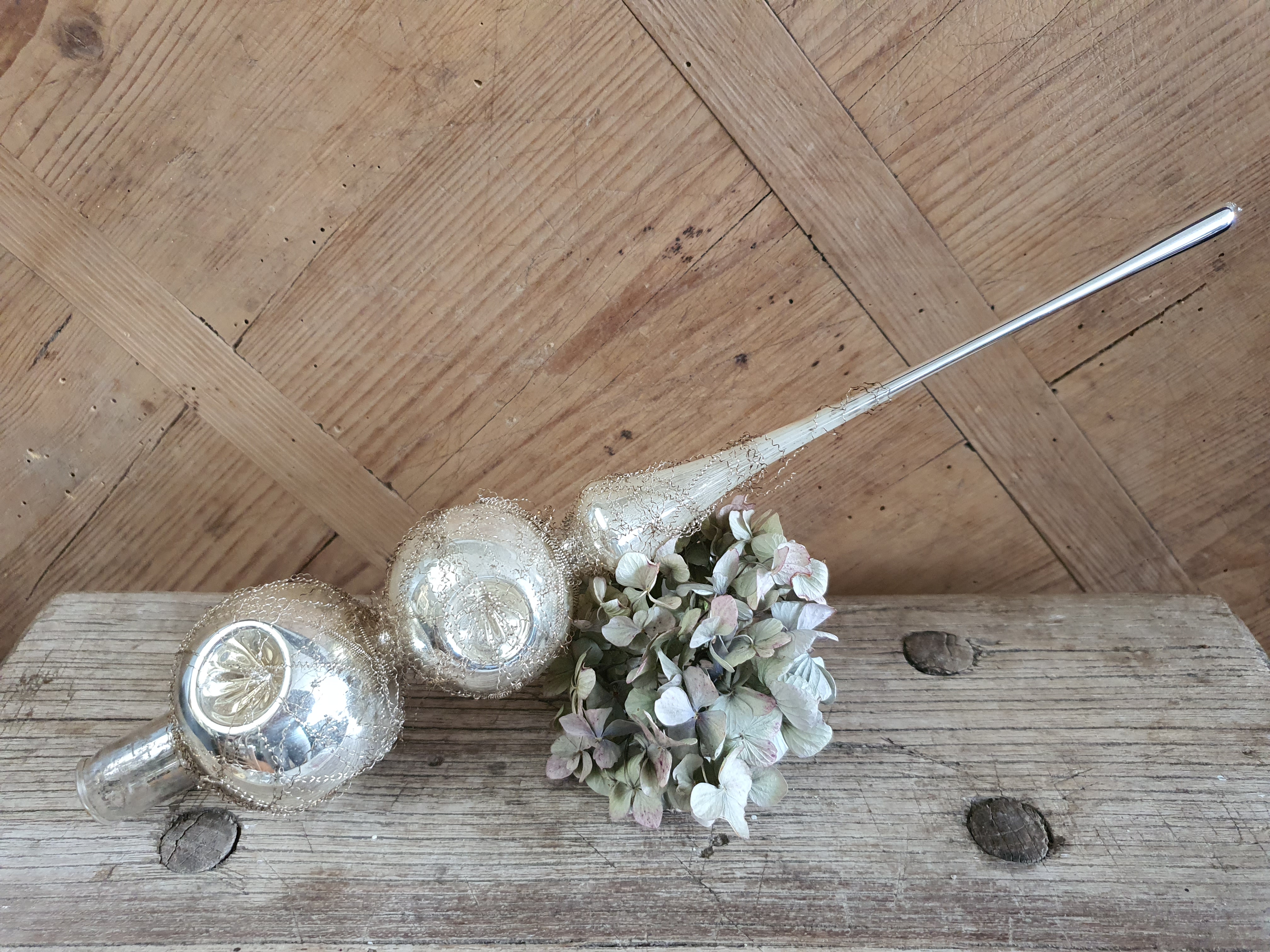 Die Baumspitze ist von innen silber bedampft und außen mit feinem Bouillondraht umwickelt.