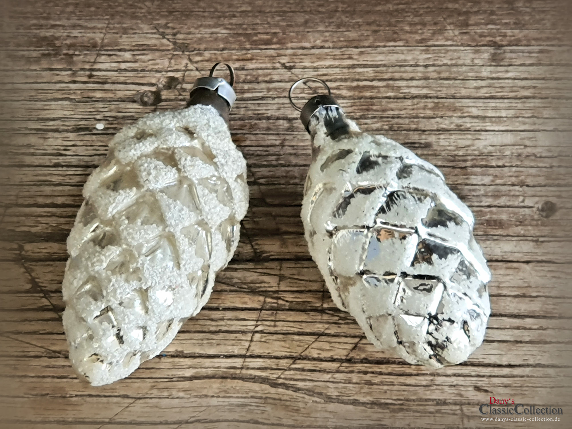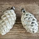 2 wunderschöne Zapfen aus feinem Glas, deutsche Handarbeit, toll gearbeitet mit Schnee.
