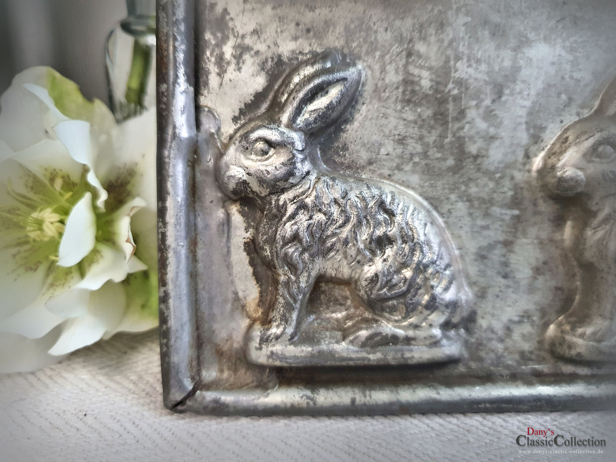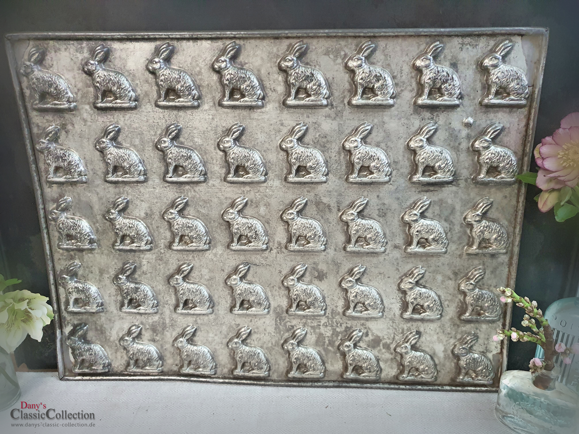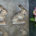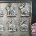 Dekorative alte Schokoladenform, Schokoladenplatte, Flachform - 40 (VIERZIG) niedliche kleine Hasen.