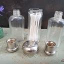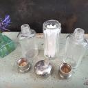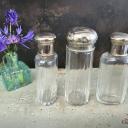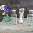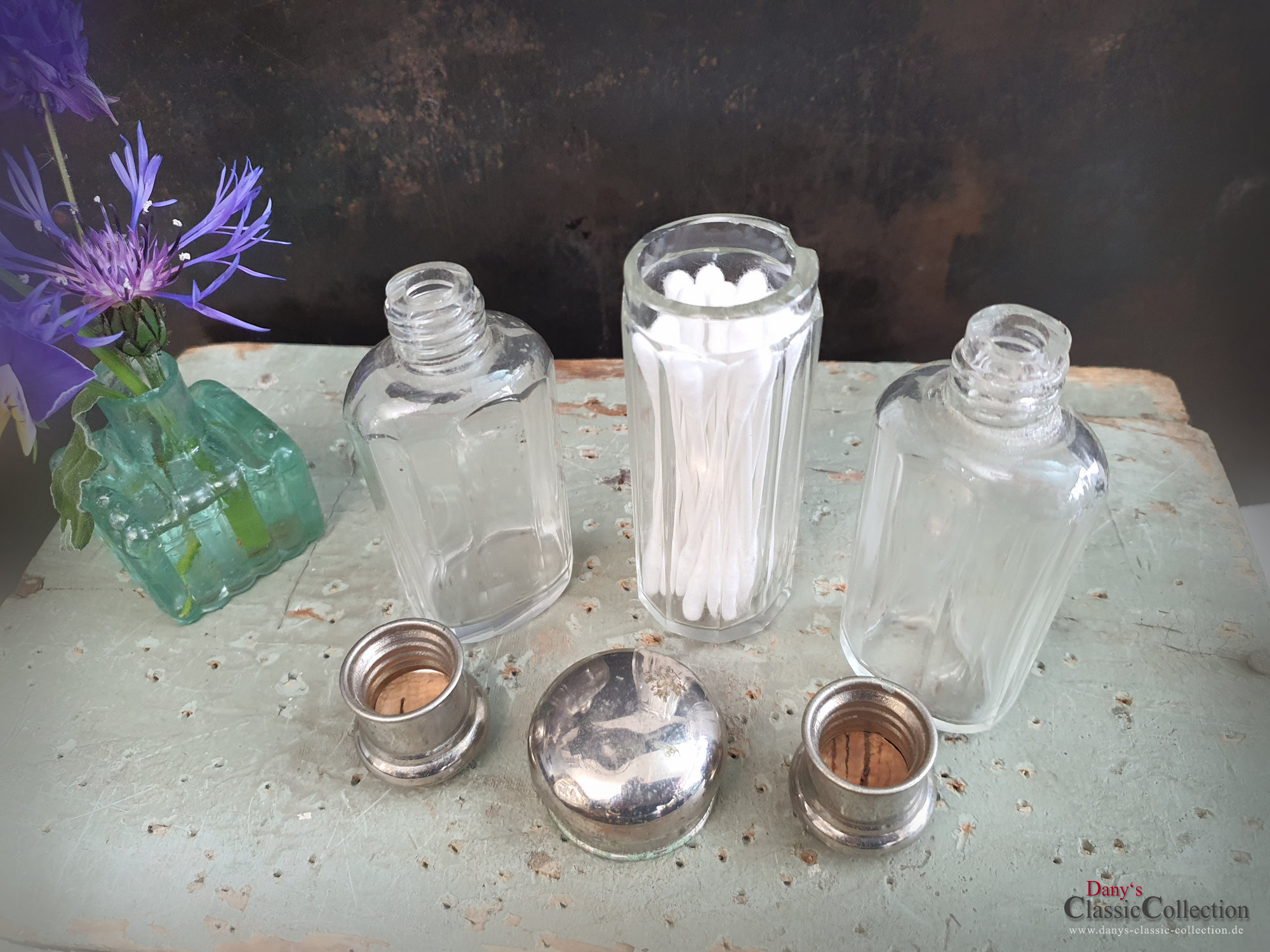 SET von 3 hübschen alten Flakons, die ehemals Bestandteil eines Reise-Etuis gewesen sind.