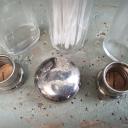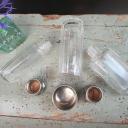 Die Teile sind aus dickem, robusten Glas mit schönem Schliff und einfachem Chromdeckel.