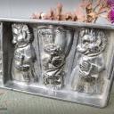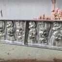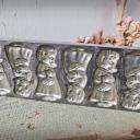 Dekorative alte Schokoladenform, Flachform - 6 zauberhafte Igel-Damen im Kleid mit Körbchen am Arm.