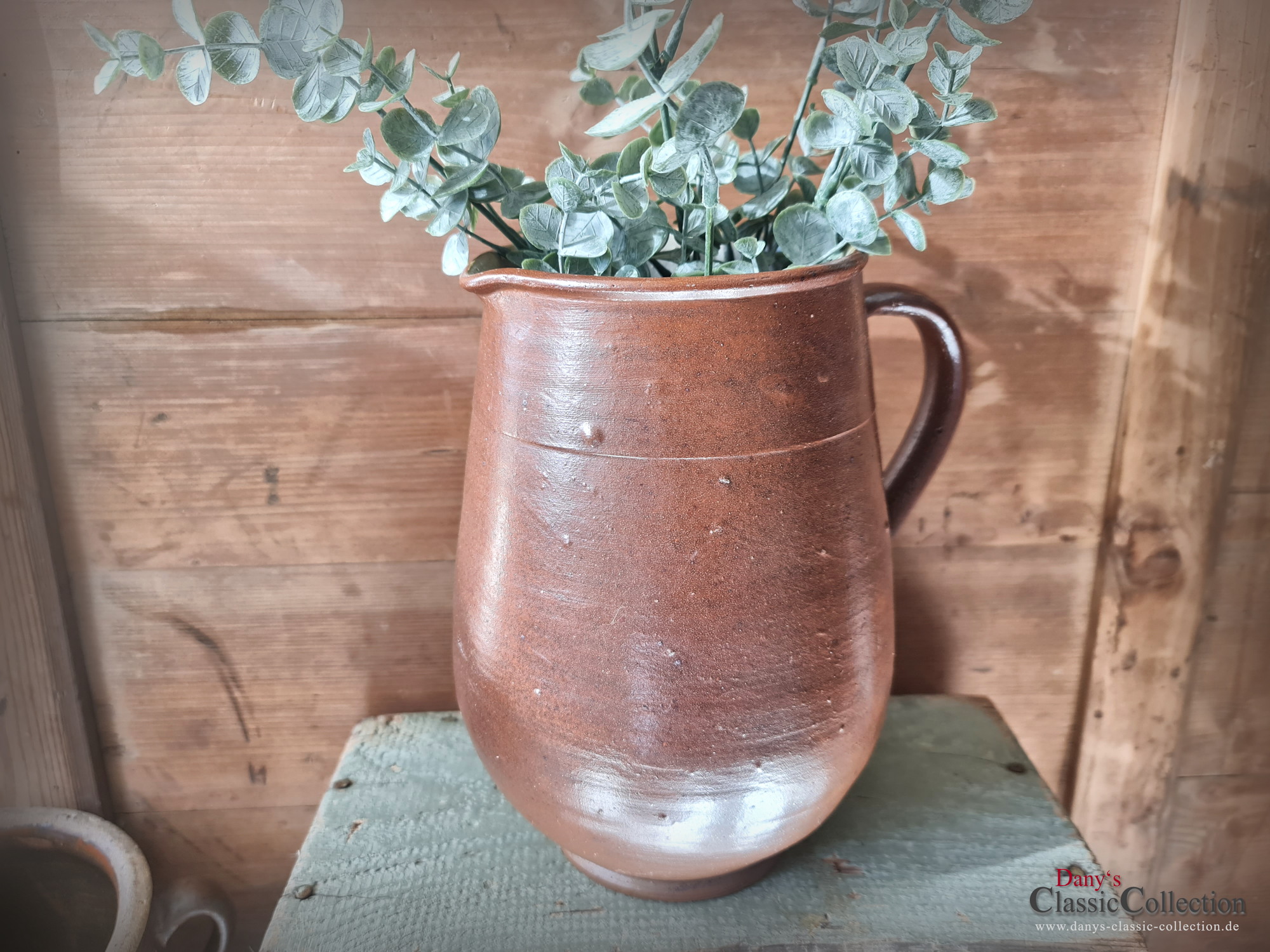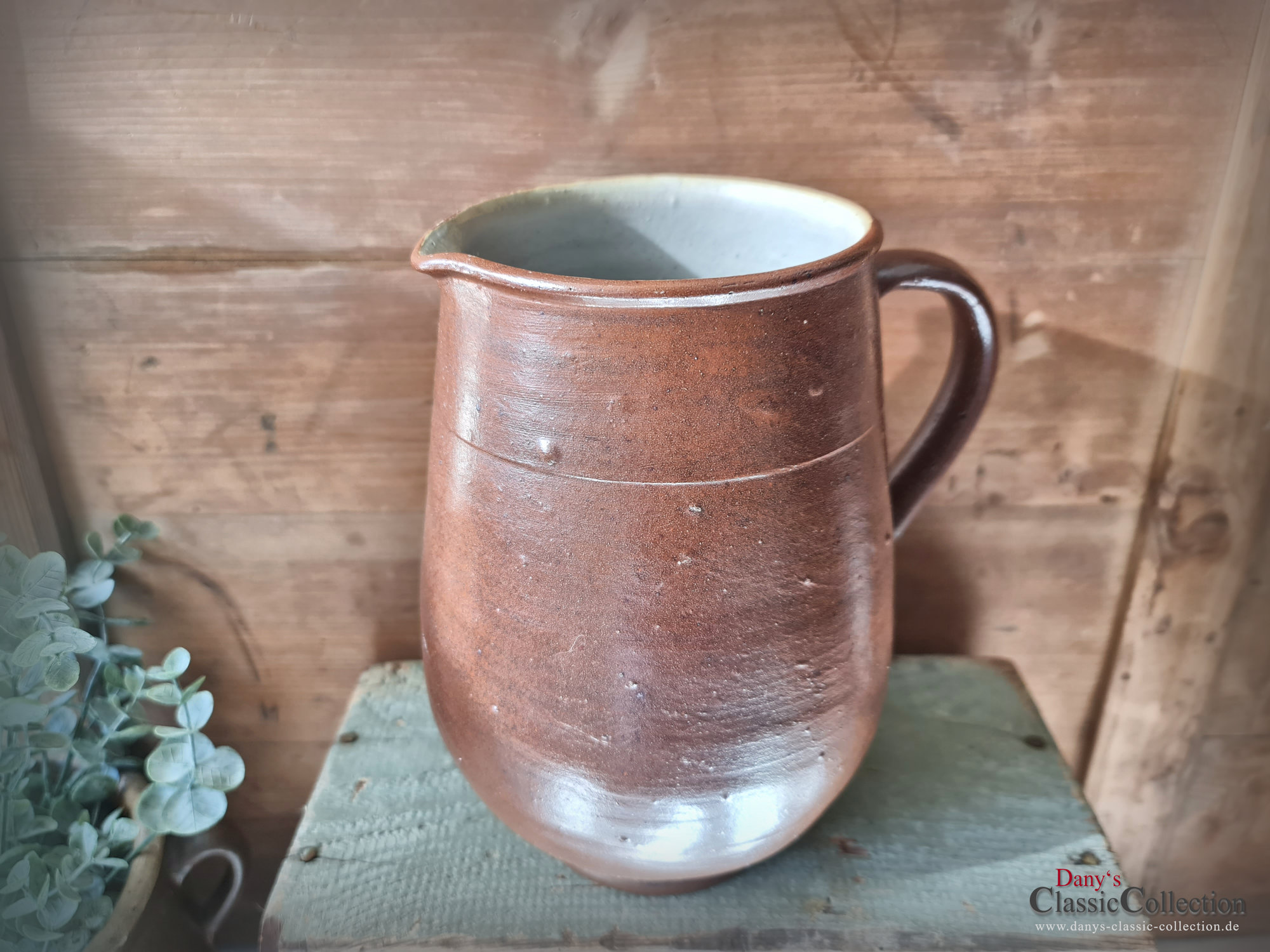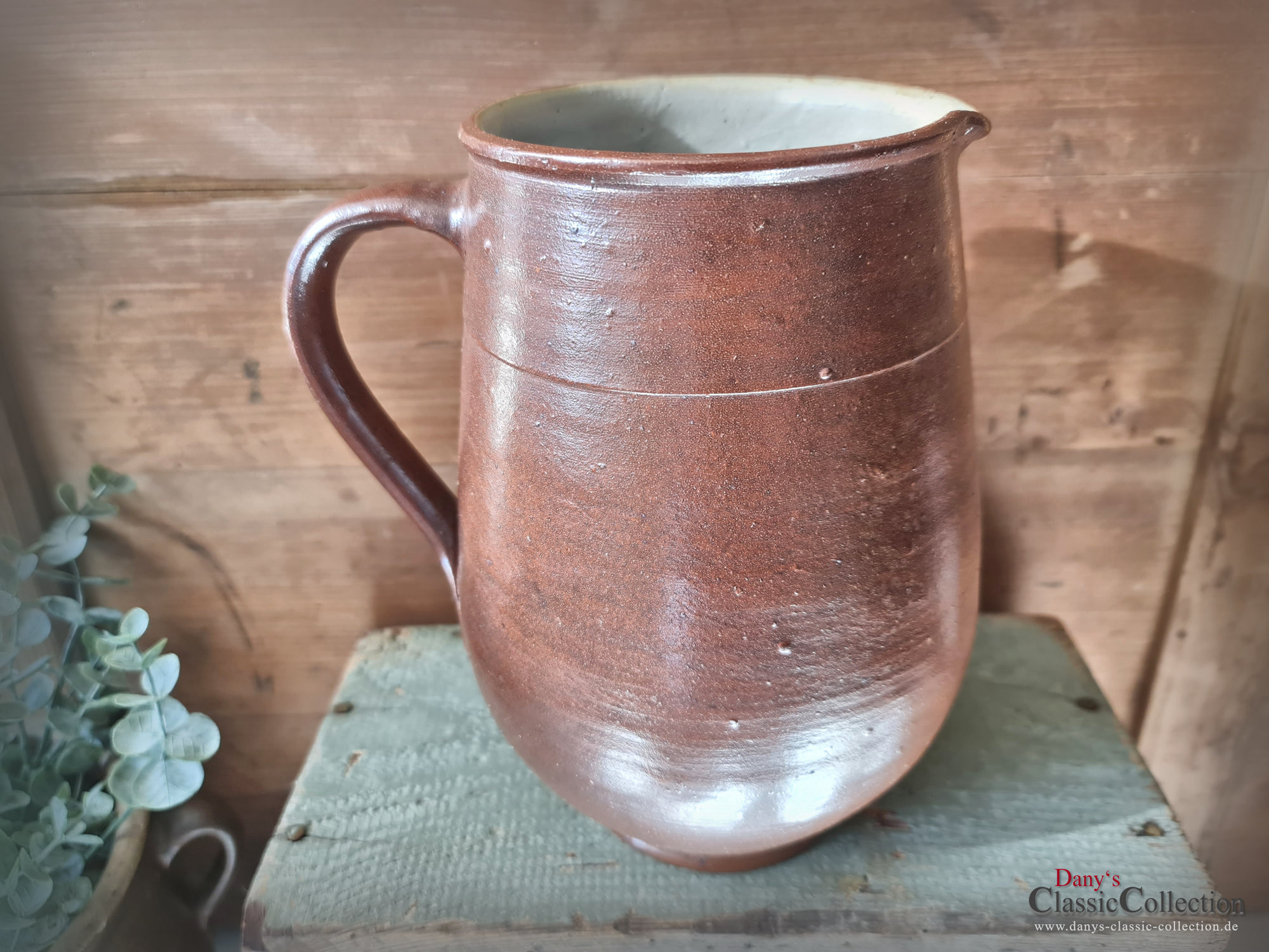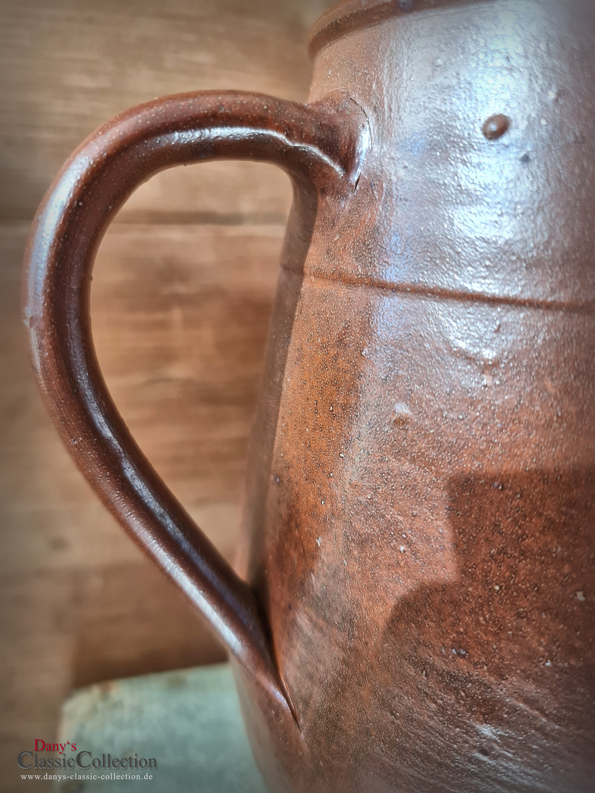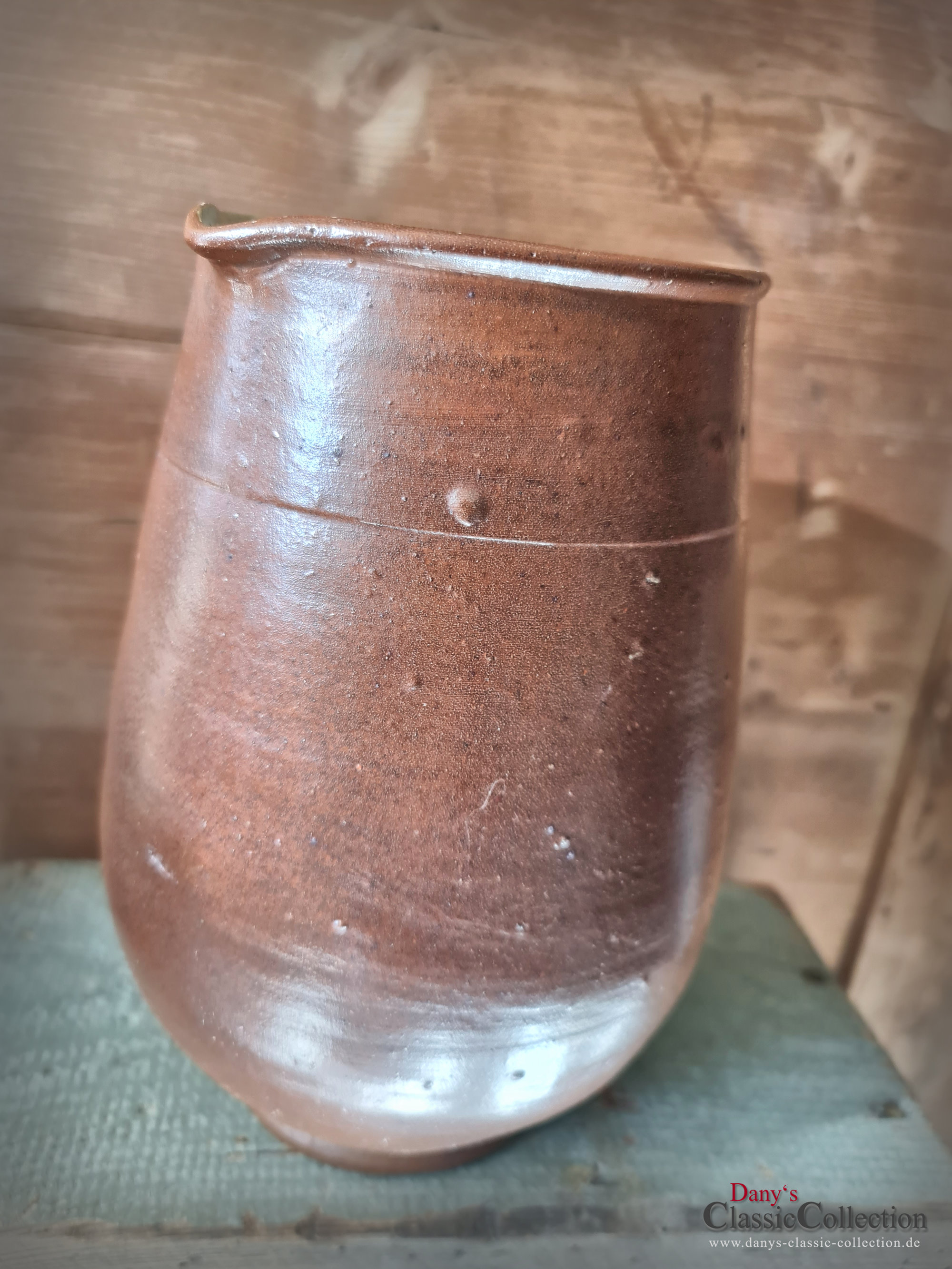 Wunderschöner alter Milchkrug, Wasserkrug, Tonkrug aus braunem Steinzeug mit wunderbarem Glanz.