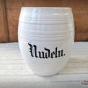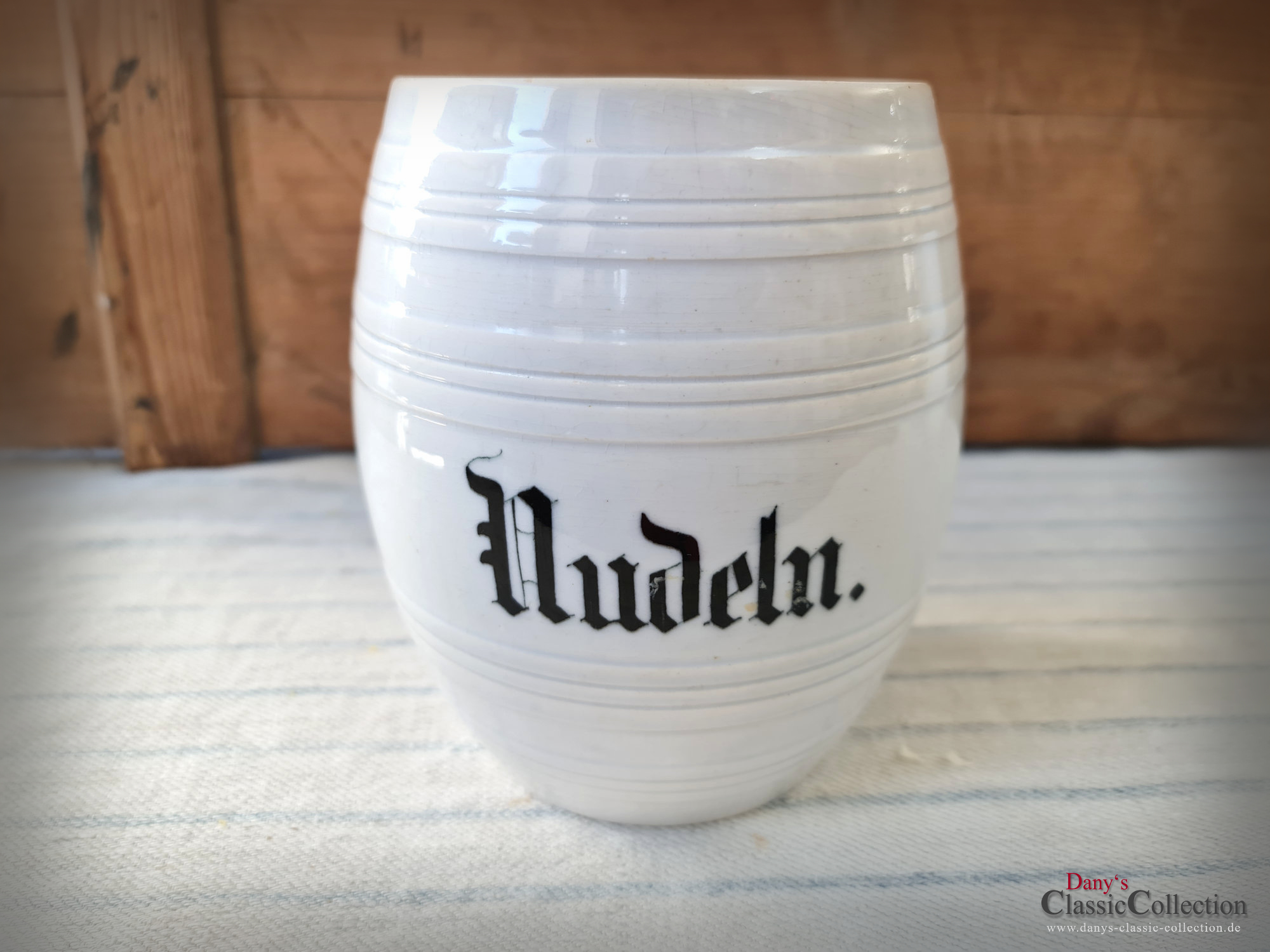 Wunderschöner, alter Vorratstopf, Vorratsbehälter, Vorratsdose aus dickem Porzellan mit schwarzer Aufschrift "Nudeln".