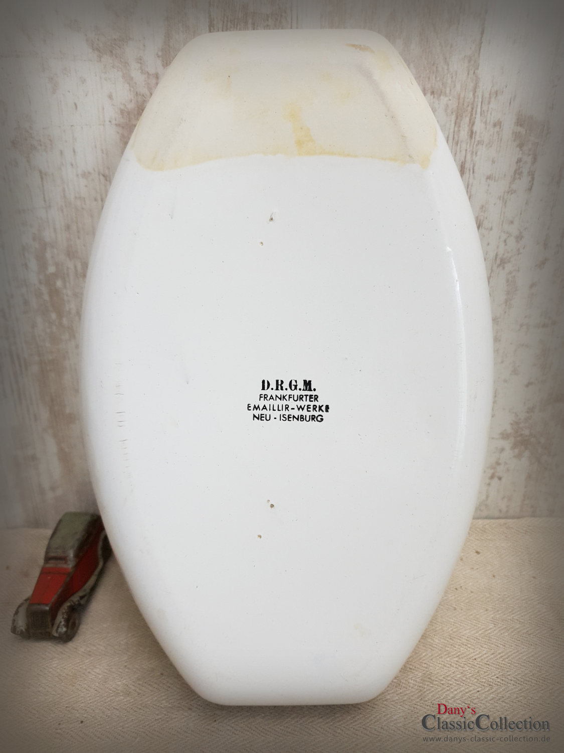 Die Schale ist in einem gutem Zustand, mit leichter altersbedingte Patina, wie Verfärbungen und kleineren Abplatzern.