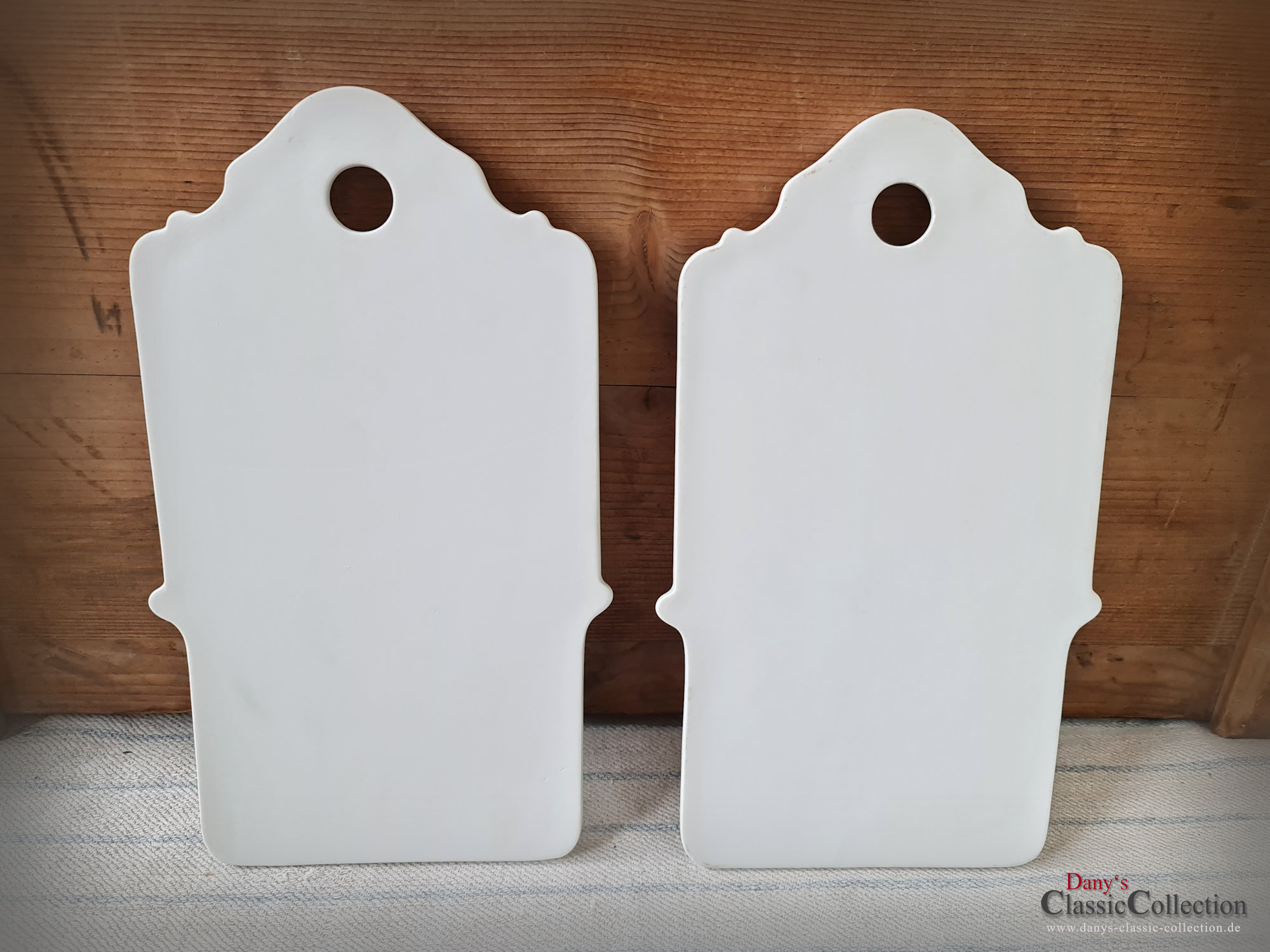 Bei den alten Brettchen wurde nur die Vorderseite mit einer Glasur versehen, die Rückseite wurde Natur belassen.