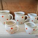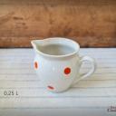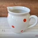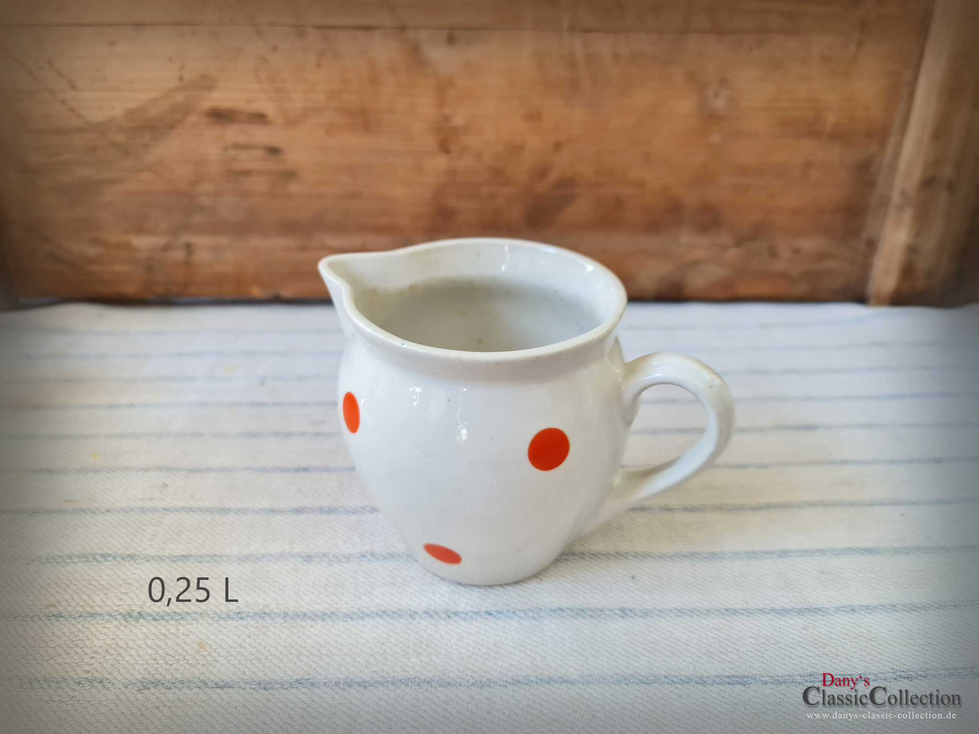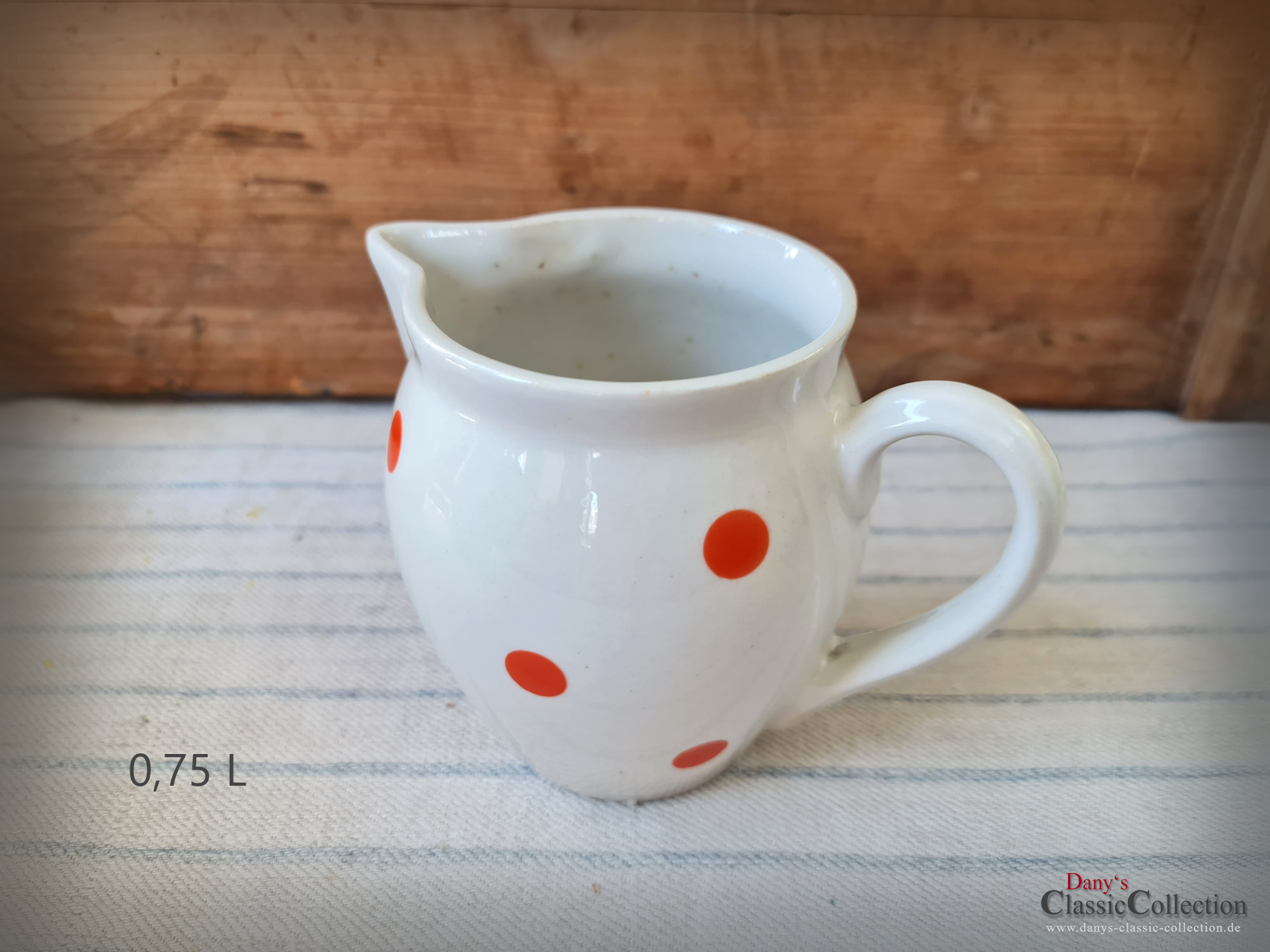 Hier haben wir einen wunderschönen Krug mit ca. 0,25 L Fassungsvemögen im Polka Dot Dekor mit orange-roten Punkten auf weissem Porzellan.