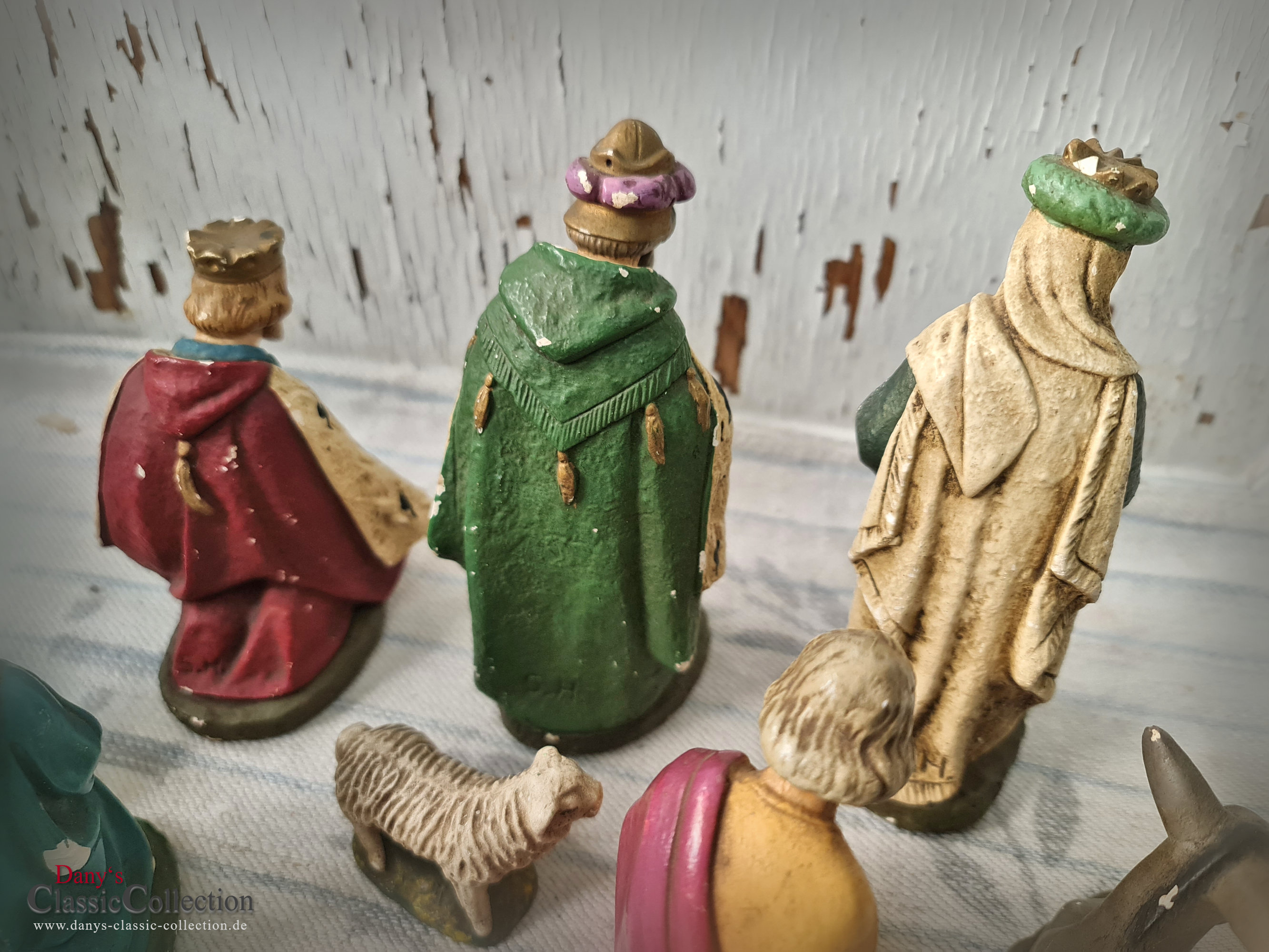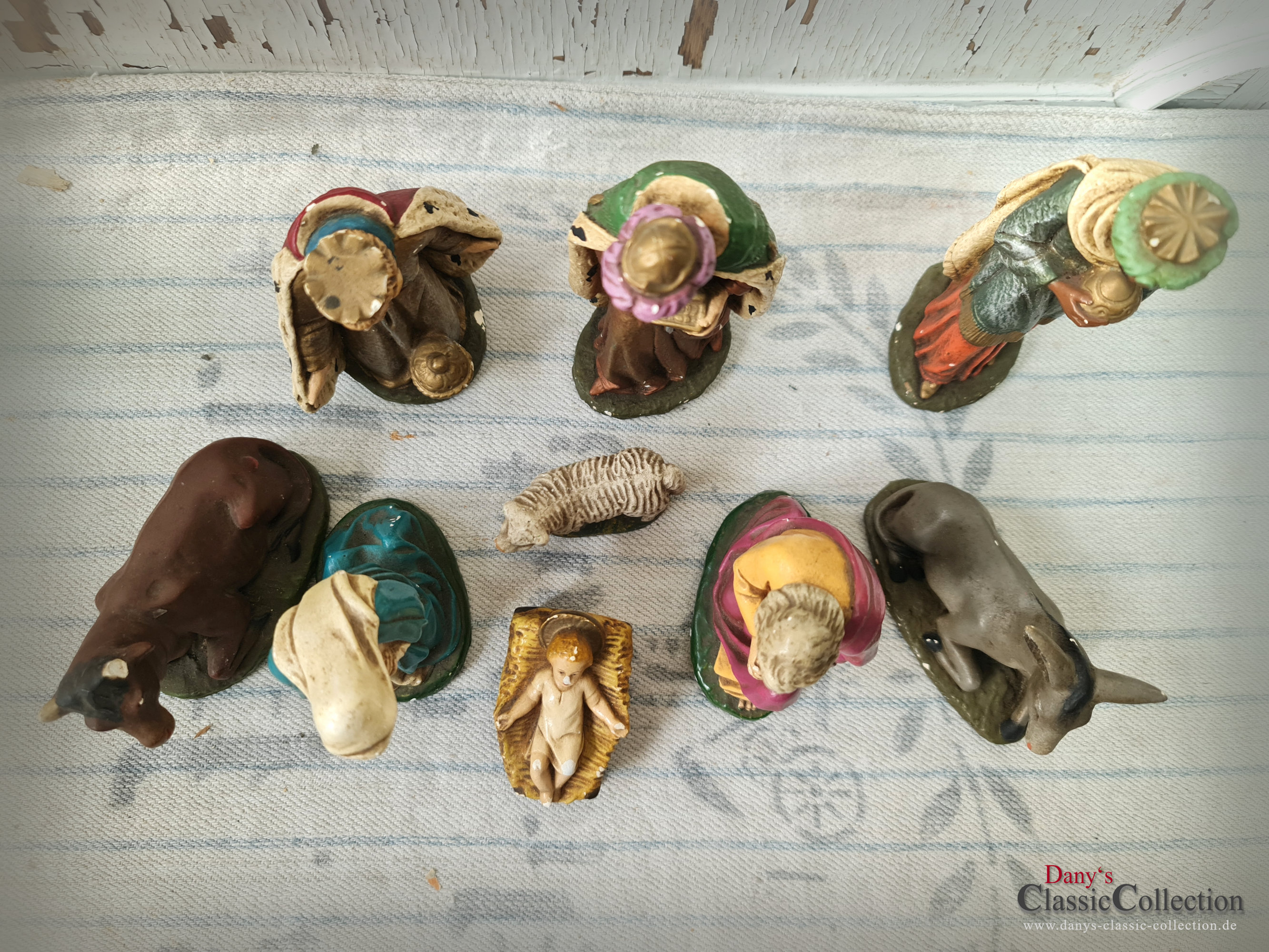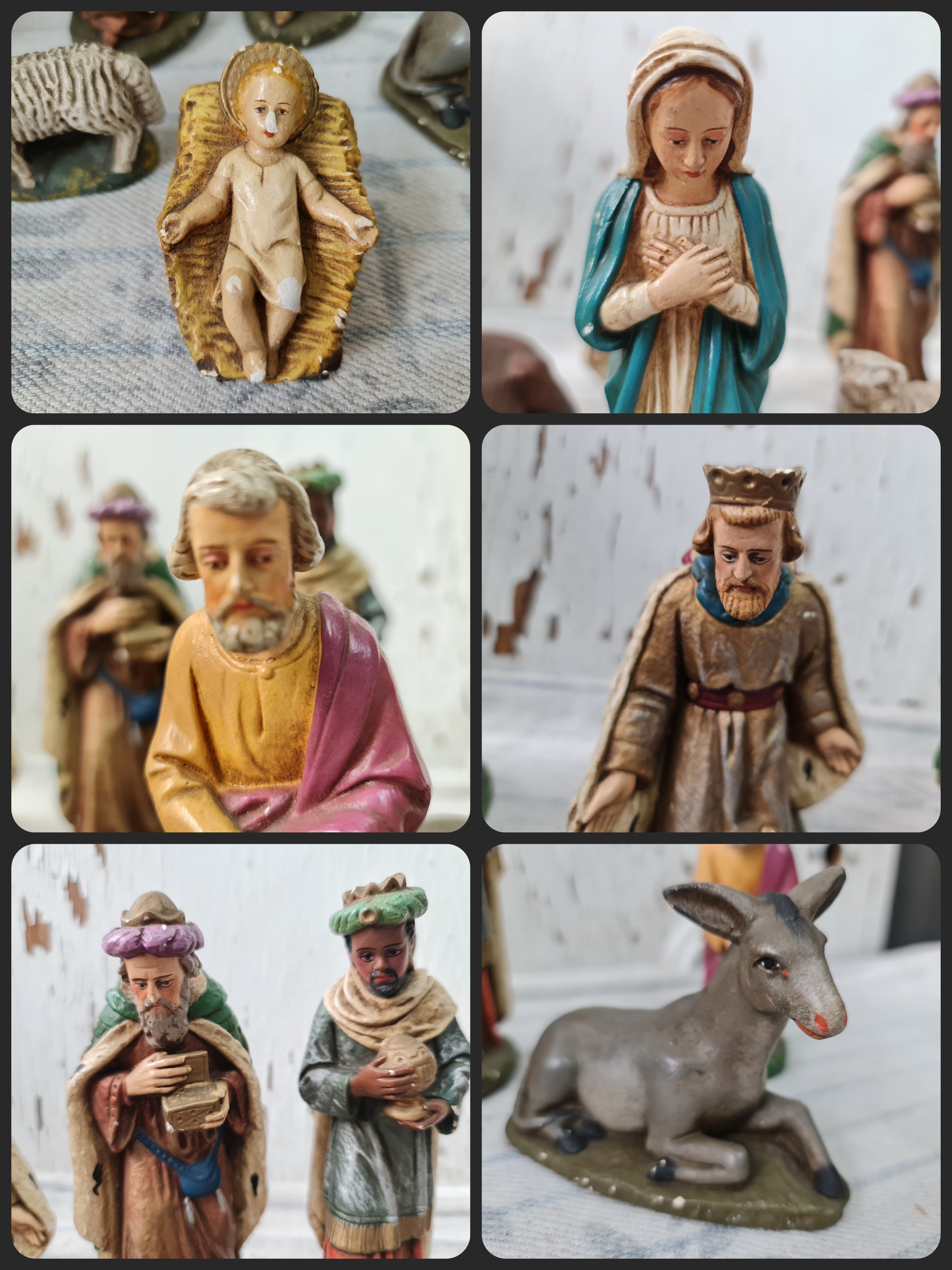 Alte Krippenfiguren: Jesus, Maria, Josef, Heilige 3 Könige, Esel, Kuh und Schaf