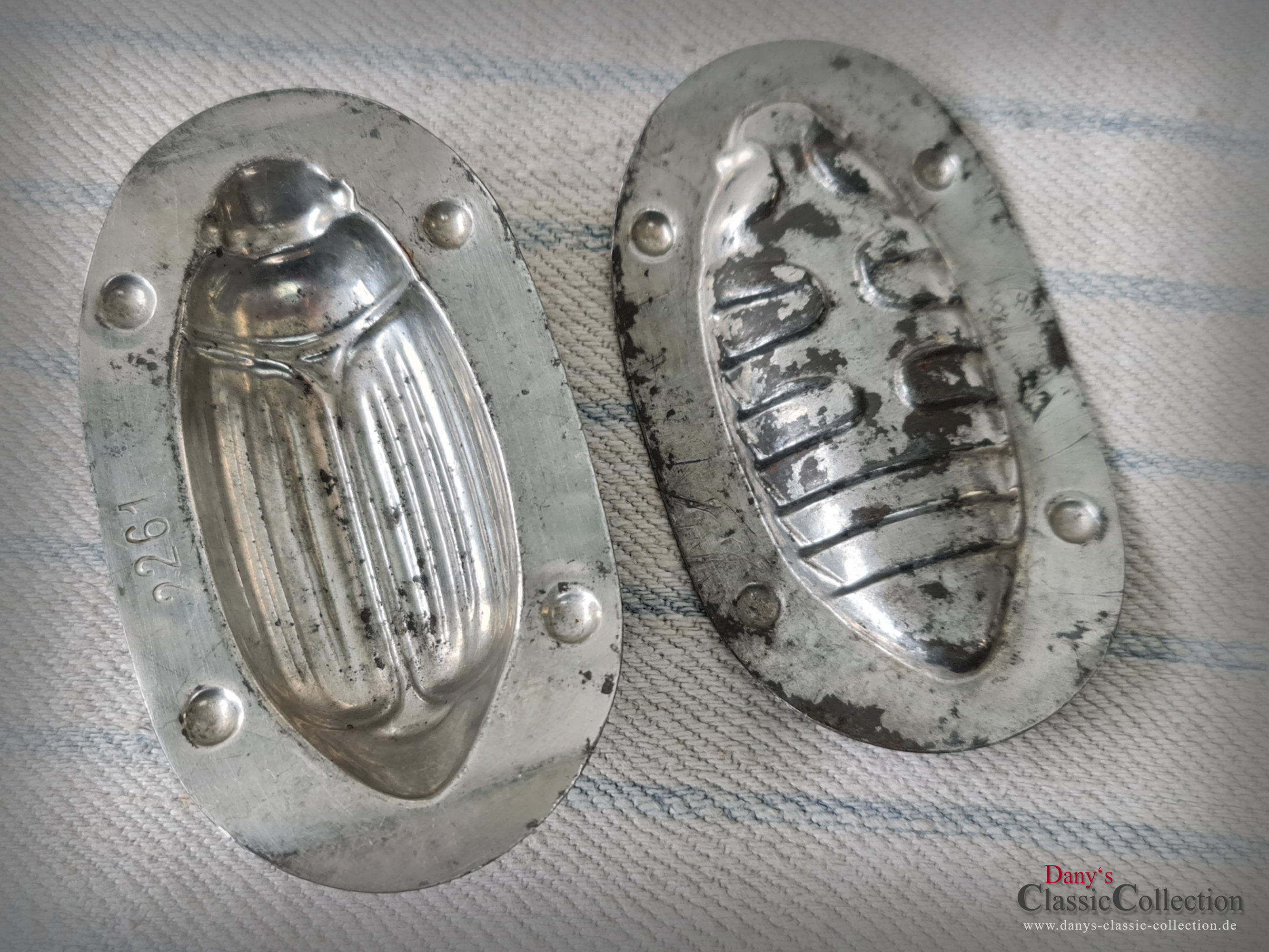 Alte Maikäfer, Käfer Schokoladenform mit wunderschöner altersbedingter Patina.