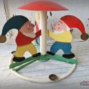 Er zeigt drei niedliche, bärtige Wichtel an einem Pilz.