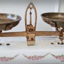 Die 5 kg Balkenwaage mit zwei Messingschalen stammt von der Fa. Cronsbusch und ist nicht nur eine Zierde in der Landhausküche, sondern auch immer noch einsetzbar.