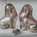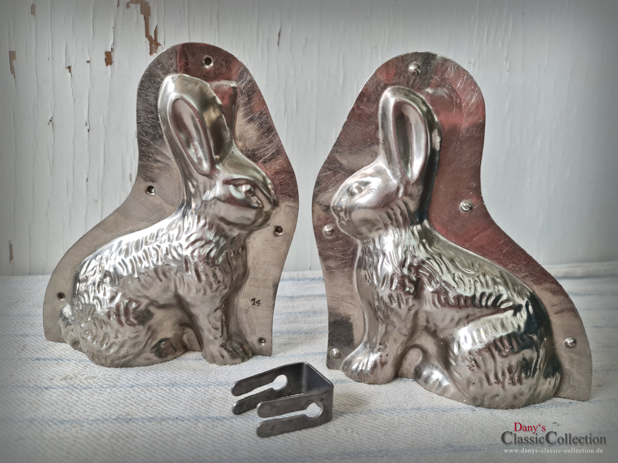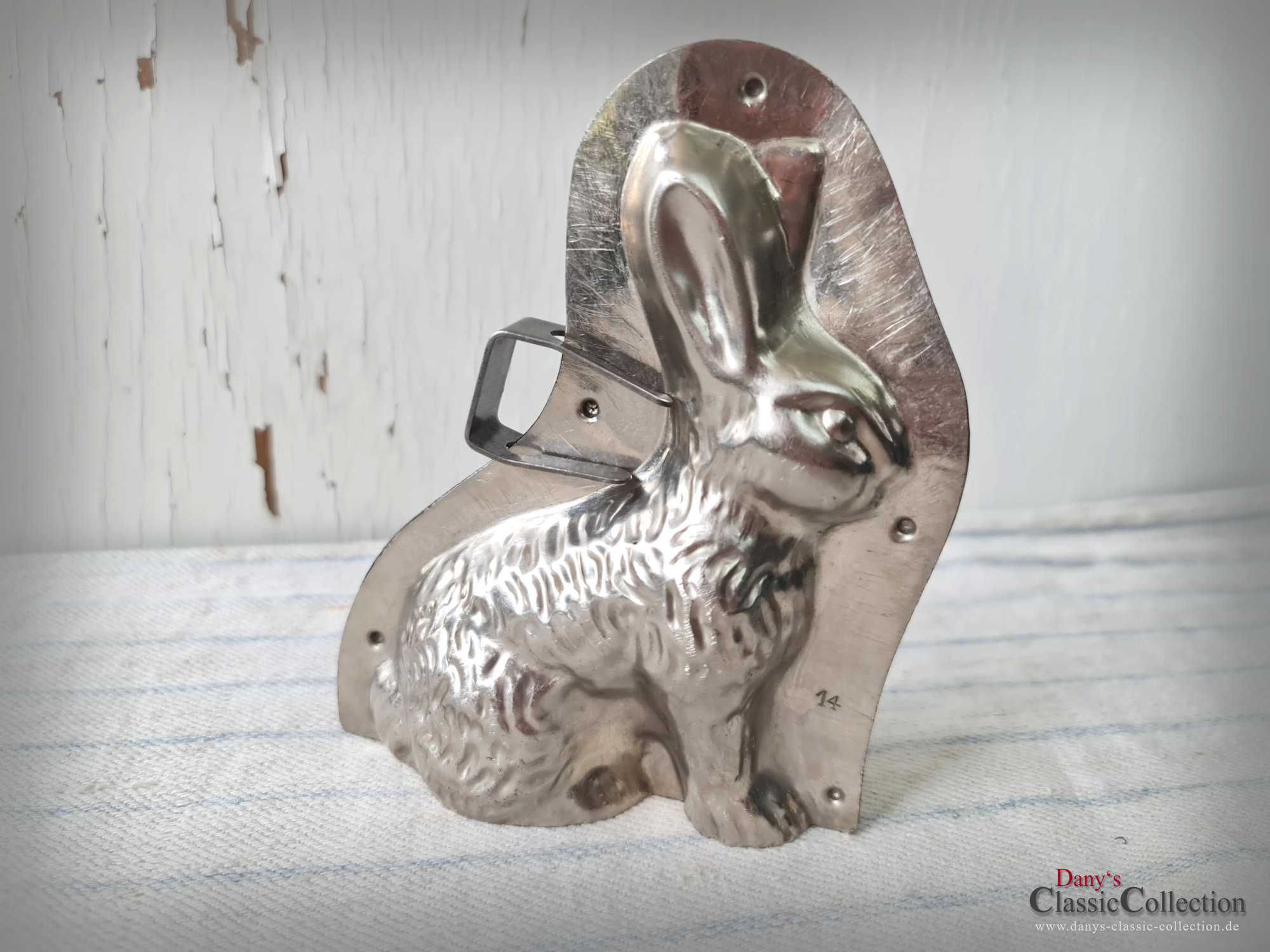 Hübsche alte Hasen Schokoladenform - ein hockender Hase mit charmanter Patina.