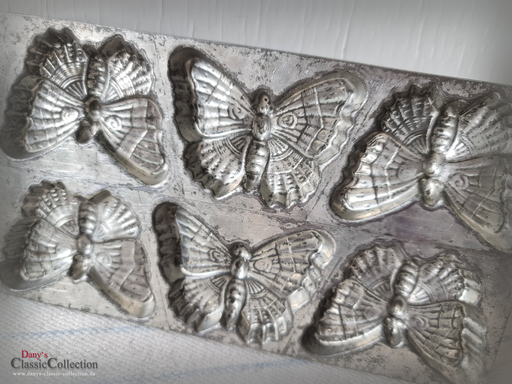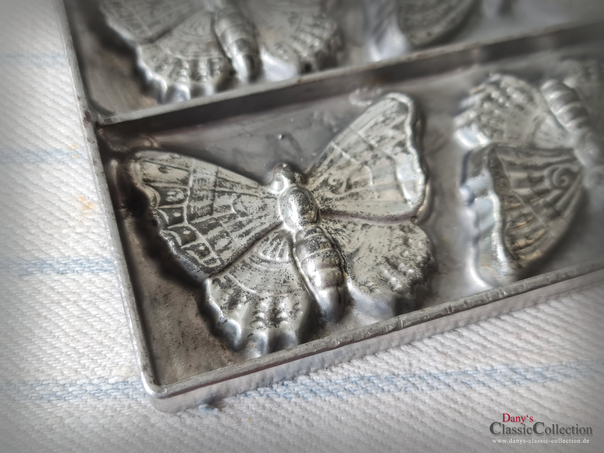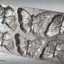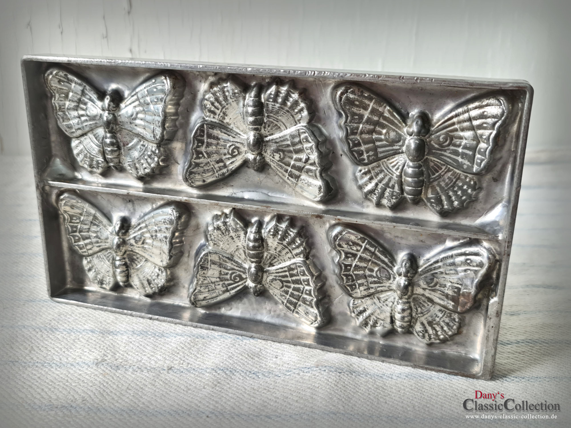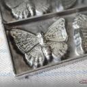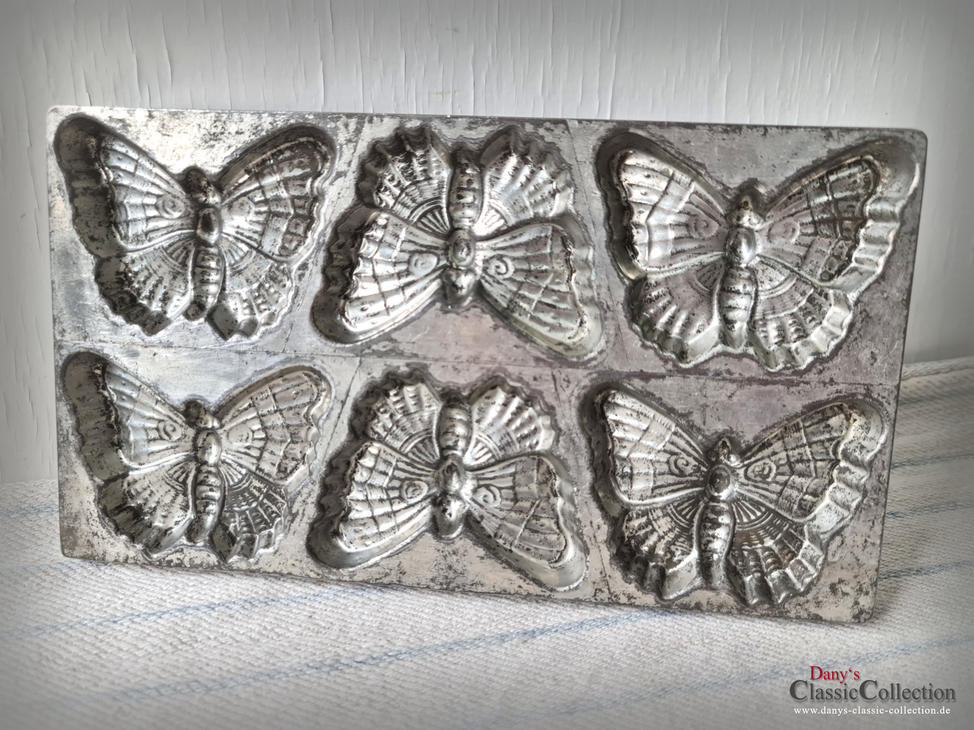 Absolute Rarität ! Bezaubernde Schokoladenplatte mit 6 Schmetterlingen, wunderschön natürlich udn detailliert gearbeitet. Durch die zauberhafte Patina ist sie heute ein tolles Deko-Stück und ein absolut seltenes Sammlerstück.