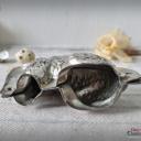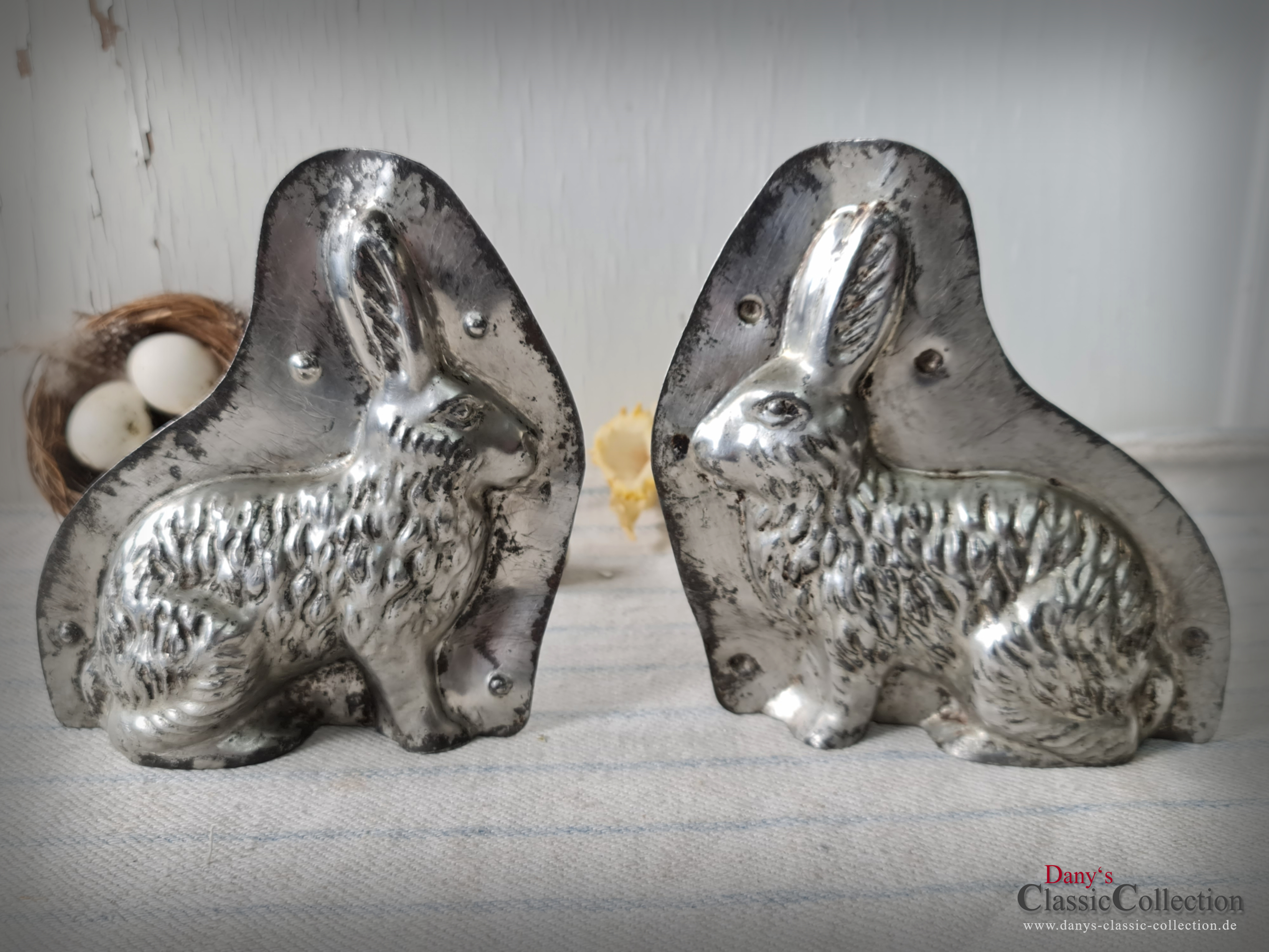 Hübsche alte Hasen Schokoladenform - ein hockender Hase mit charmanter Patina.