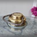Schöner bauchiger Bettwärmer mit Drehverschluss aus Messing und Chromring zum leichteren Drehen und halten.