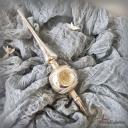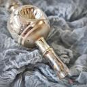 Die mundgeblasene und handbemalte Spitze ist silber mit weißen Akzenten.