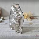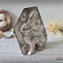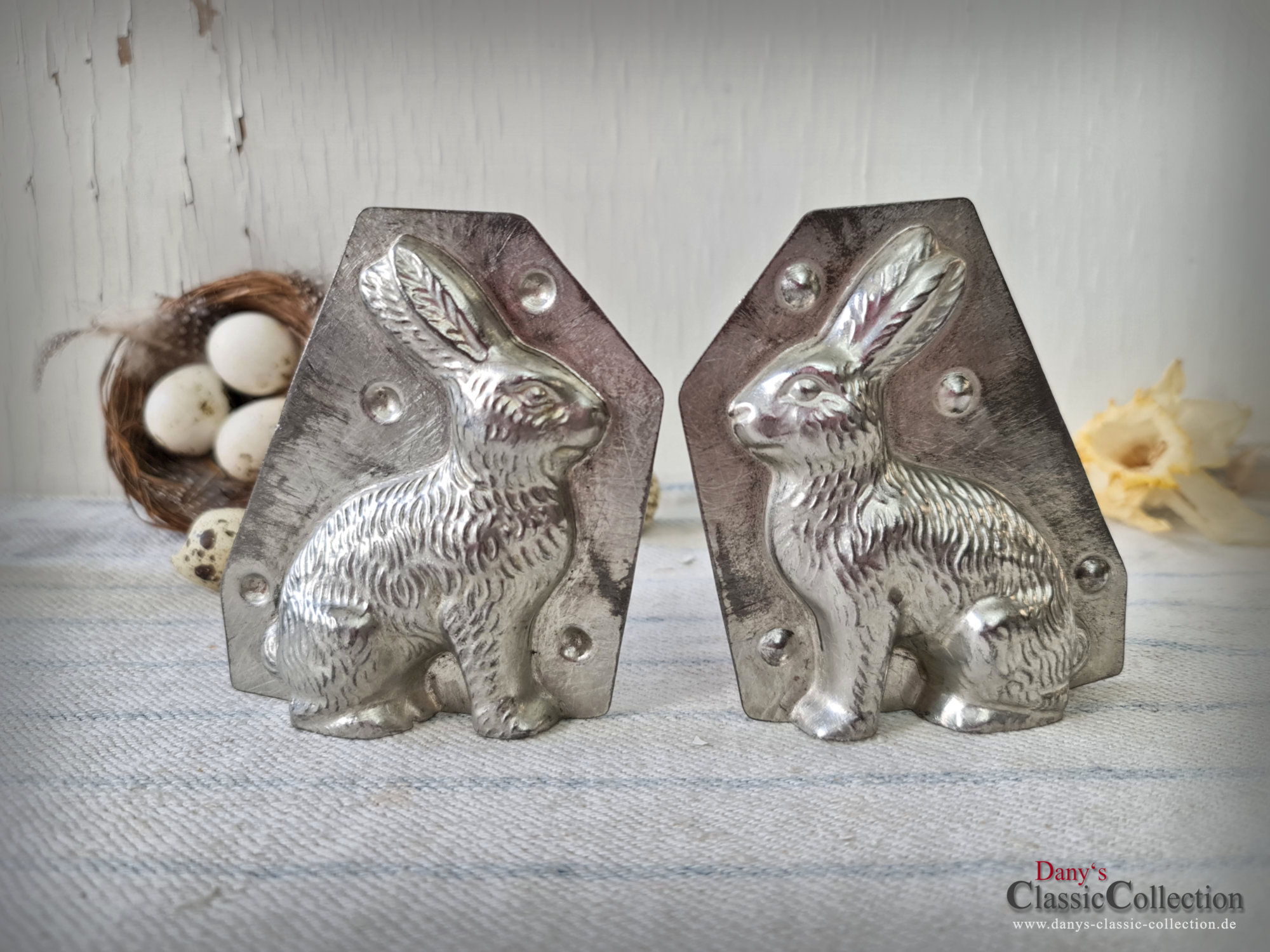 Hier haben wir eine klassische alte Hasen Schokoladenform - ein hockender oder sitzender Hase, der ganz wunderbar detailliert gearbeitet ist und einen mit seiner charmanter Patina verzaubert.