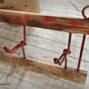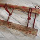 Rustikale Garderobenleiste mit 3 großen Schlaufenhaken plus je 1 Doppelaufhänger, gehalten von massiven Löwenköpfen.