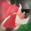 Hier habe ich einen wirklich entzückenden Zwerg auf einer Schaukel, die Beine lässig übereinander geschlagen, den Frühling genießend. Zu seinen Füßen nicken die Schneeglöckchen mit ihren Köpfen und über seinem Kopf thront ein Schild mit dem Schriftzug " Frohes Fest "