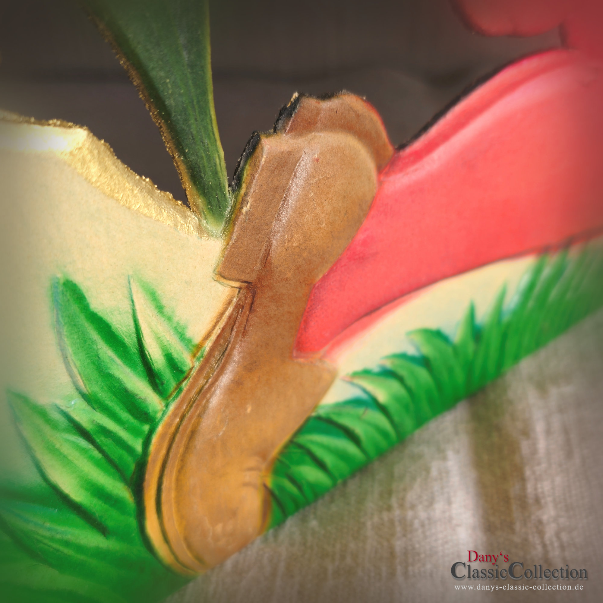 Es handelt sich um eine stabile geprägte und lithografierte Pappe. Sie befindet sich in einem sensationellem Vintage Original Fundzustand mit seidig mattem Glanz.