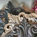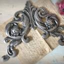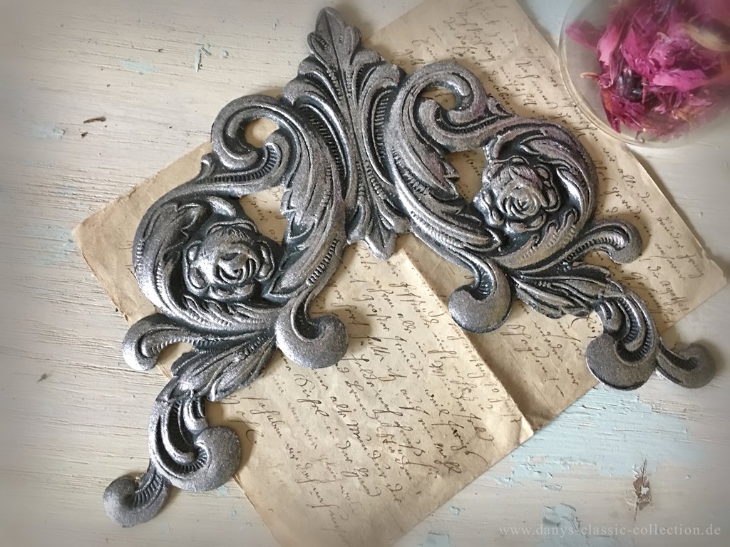 Tolle uralte dreidimensionale Dresdner Pappe dunkle Rosenborte in mattem silber und schwarz. Die Pappe ist für ihr beachtliches Alter in einem bemerkswerten Zustand und ist gerade jetzt in der Adventszeit ein tolles Dekostück. Früher wurden sie zur Verzierung von Särgen benutzt.