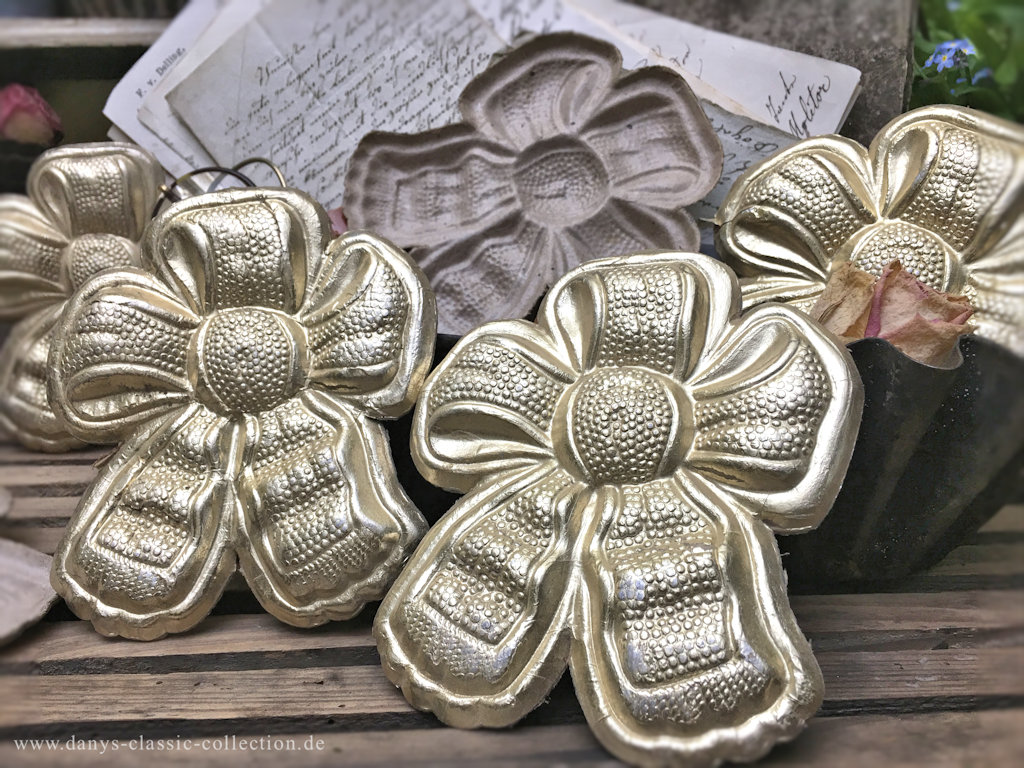 Dresdner Pappe hatte ihre Blütezeit um 1880 und war bis in die erste Hälfte des 20.Jahrhunderts sehr beliebt. Ihren Namen verdankt sie dem Herstellungsgebiet, dem Raum um Dresden. Der Karton wurde durch zwei- oder dreidimensionale Formen gepresst, in eine bestimmte Form geprägt sowie gestanzt. Durch kaschierten Karton mit Metallfolie erhielt der Dresdner Schmuck einen Glanzeffekt. Dadurch sahen die filigranen dreidimensionalen Produkte auf den ersten Blick denen aus Metall täuschend ähnlich.