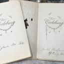 Die Karten sind geprägt und die Blätter werden mit einem Bändchen zusammengehalten.