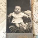 Wunderschönes altes Kabinett-Foto eines Babies auf einem Fell.