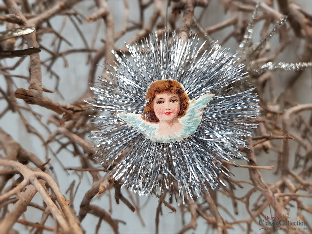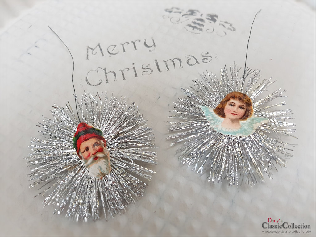 Es sind handelt sich um silberne Metallfäden, welche mittig mit niedlichen Oblatenbildchen verziert sind.